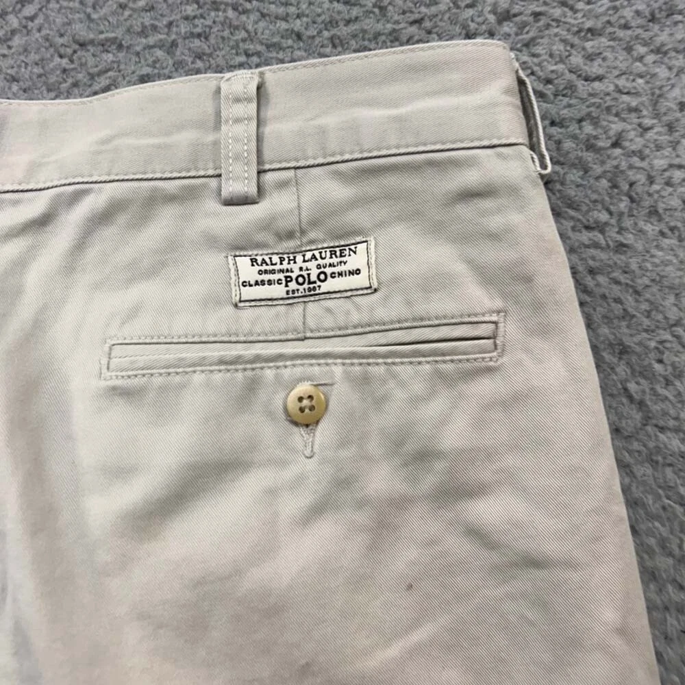 Polo Ralph Lauren Shorts Mens 30 Beige Chino Flat Front Casual Pony Logo Preppy