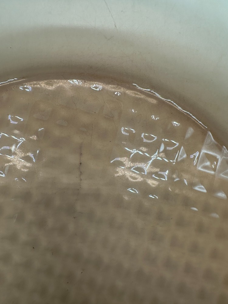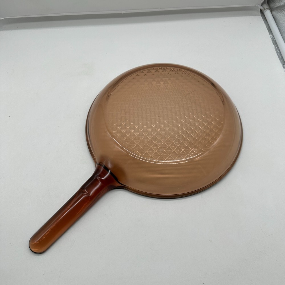 This vintage amber glass skillet with a waffle bottom is perfect for your cooking needs. The 10-inch Vision Cookware pot has a unique pattern and is made by Pyrex Corning. It is a great addition to your collection of glass cooking pots and lids. This sauce pan is perfect for making your favorite dishes, and its durable construction ensures that it will last for years to come. The pot is made in the United States, and its original/reproduction status is vintage original. It is part of the Visionware product line and comes with a set of pots. The skillet is perfect for those who love to cook and is a must-have for any kitchen. Used , scratch on bottom outside of pan , does not effect use, otherwise in great shape