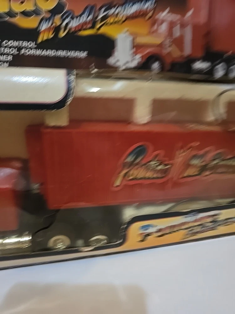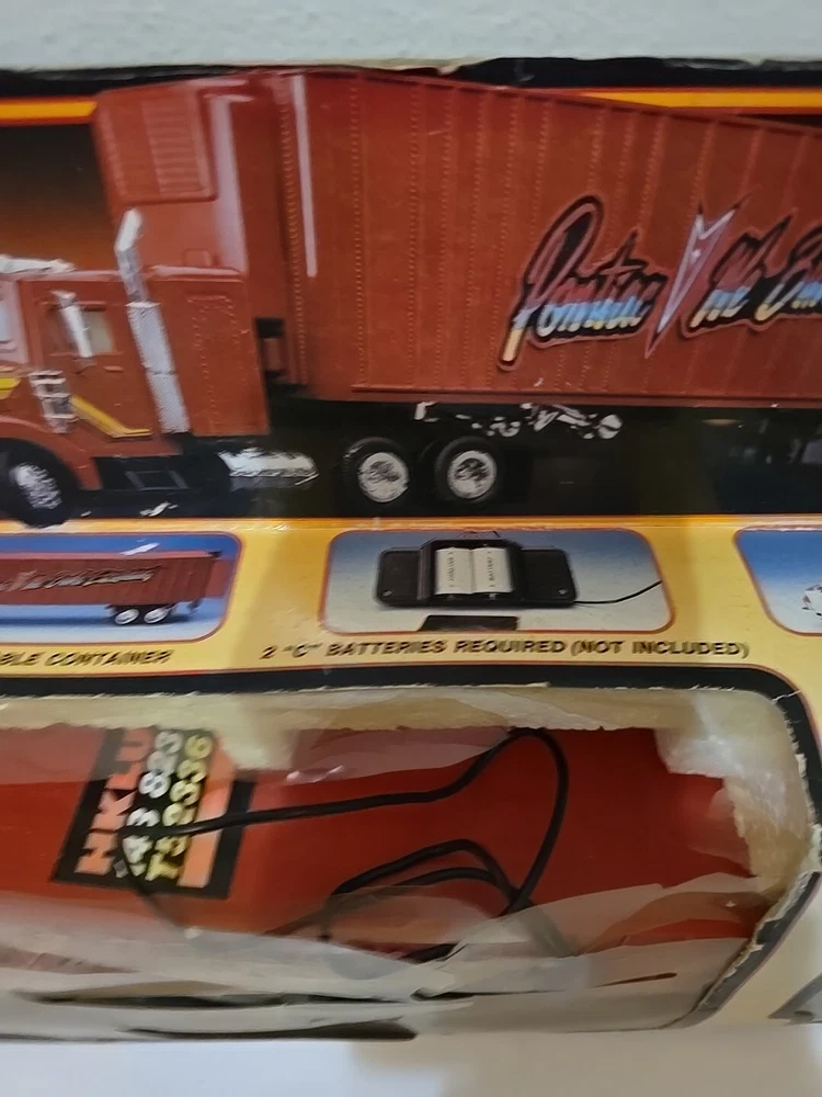 Very rare 1989 remote control semi w original box.Box has some wear from age, cellophane has a tear. Semi looks like great shape. I Can't say it's new in box and I'm not going to be the one to remove from box for testing as it was just a second hand find on my treasure hunts. I am not a collector of automotive stuff. I just buy rare stuff when I find it. Leaving that job to someone who does appreciate these and know more than i do.