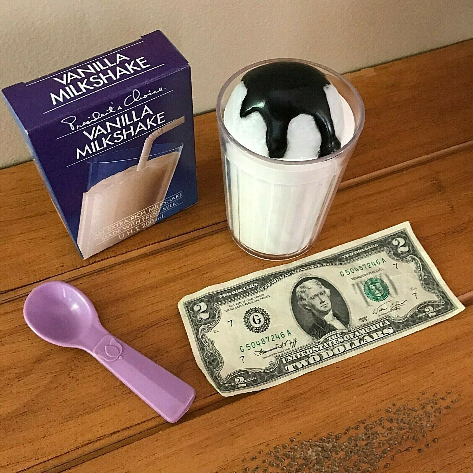PLEASE READ ..... I DO NOT ACCEPT ANY OFFERS PLEASE DO NOT WASTE TIME SENDING MESSAGES OF WHAT YOU ARE WILLING TO PAY YOU ARE LOOKING AT BUY IT NOW LISTINGS - NOT BEST OFFER LISTINGS! I DO NOT GIVE FREE SHIPPING EITHER BOX 9 - BAG 5 l l l l l l l l l l **** (  ̄ ▽  ̄ ) **** llllll THIS IS CRAZY COOL - SO REAL LOOKING!! UNIQUE SET - ONLY 1 ON EBAY!! YOU WILL RECEIVE AS SHOWN (1) VINTAGE PRESIDENT'S CHOICE VANILLA MILKSHAKE PLAY FOOD CARDBOARD BOX IN PERFECT SHAPE, NOT CRUSHED OR TORN. YOU WILL ALSO GET A 2 PIECE GLASS OF MILK AND A SCOOP OF ICE CREAM (OR MAYBE IT'S A WHIPPED CREAM DOLLOP) WITH CHOCOLATE DRIZZLE AND A THICK PLASTIC PURPLE SPOON MADE BY LITTLE TIKES. EXCELLENT!! THE MILK CUP IS 2 PIECES. THE WHITE PLASTIC "MILK" FITS INSIDE. THE PLASTIC CUP IS NOT SCUFFED UP IT LOOKS BRAND NEW . CLEAR, NOT DISCOLORED OR CHEWED ON. FANTASTIC PRETEND PLAY SET AWESOME DETAILS AND COLOR VERY HARD TO FIND ANYMORE! VINTAGE SEE PICTURE WITH $2 BILL FOR SIZE AND SCALE. MONEY NOT INCLUDED ...BUT YOU ALREADY KNEW THAT! LOL :) NOTE: VERY NICE CONDITION, BOX WAS NOT CRUSHED OR REPAIRED. NO DAMAGE OR ODORS, VERY CLEAN! USE FOR STAGING/PROPS, KIDS PLAY, TEACHING, DECOR OR ANY FOOD THEME DISPLAY. GREAT COLORS AND DETAIL. RUBBERY HARD PLASTIC. LOTS OF GREAT DETAILS! SUPER NICE CONDITION! NO DAMAGE, ODORS OR REPAIRS - HURRY AND BUY THIS I ALSO HAVE 2 LISTINGS OF A PEANUT BUTTER AND JELLY SANDWICH. ONE OF THE LISTING HAS 2 PEANUT BUTTER AND JELLY SANDWICHES. I HAVE A BLT SANDWICH 2 REALISTIC HAMBURGERS WITH FRENCH FRY/ONION RING SIDES AND PLENTY MORE REALISTIC FOODS STILL TO LIST .....CHECK OUT MY LISTINGS OFTEN FOR NEW ITEMS!! SEE ALL PICTURES .... ZOOM IN TO SEE CLOSE-UPS NO RETURNS ACCEPTED FOR COLLECTIBLE ITEMS. CHECK AROUND - LOTS OF COOL STUFF HERE!! Check out my other items - click here :) ✿✿ ✿ ✿ ✿ ✿ ✿✿ n n n n n n SOME COLORS CAN BE DIFFICULT TO DESCRIBE & CAPTURE. YOUR MONITOR MAY SHOW A SLIGHT VARIATION FROM MINE. THE LIGHTING ON THE CAMERA WILL EFFECT THE PICTURES. IF EXACT COLOR IS A CRITICAL CONCERN - CONTACT ME BEFORE BIDDING!! @@@@@@@@@@@@@@@@@@ Size Disclaimer/Return Policy : Clothes fit people differently and sizes vary even within the same brand. It is important to know your measurements when buying clothing online. This will insure the correct fit. I do my best to provide accurate size descriptions and measurements of the clothing but this is no guarantee the item will fit you. Ask all questions prior to bidding as we DO NOT accept returns due to items not fitting or because you've changed your mind. This is very time consuming and costly. I am not a big retail store where you can use this forum as a dressing room or expect a refund for whatever reason. You need to know what you are purchasing before you click "BUY" because shipped items are considered yours. Thank you for reading this and respecting our policy . ♥ ♥ ♥ ♥ ♥ ♥ ♥ ♥ ♥ ♥ ♥ ♥ ♥ ♥ n n n n n n my listings are set up with no invoicing BUY NOW - PAY NOW n n n n n n ******************* I DO NOT ACCEPT ANY OFFERS - PLEASE DO NOT WASTE TIME WITH MESSAGES OF WHAT YOU ARE WILLING TO PAY. YOU ARE LOOKING AT BUY IT NOW LISTINGS - NOT BEST OFFER LISTINGS! ******************* TONS OF BEAUTIFUL CLOTHING & UNIQUE ITEMS LISTED ...... Check out my other items - click here :) I SHIP USING USPS MAIL OR FEDEX w/FREE DELIVERY CONFIRMATION. THE TRACKING NUMBER WILL BE EMAILED TO YOU. I TAKE GREAT CARE IN PACKAGING YOUR ITEM AND SEND IT OUT WRAPPED SECURELY. I DO NOT SHIP INTERNATIONAL OR TO CANADA - PLEASE DO NOT ASK! Now, please read BEFORE PURCHASING: All items are described well and not returnable . Sizes can vary - therefore, YOU ARE RESPONSIBLE FOR THE FIT . I included measurements on every item listed and you need to check these measurements to insure a proper fit - for you. Ask questions if you are not sure. I always respond! If you do not get a response - check your Anti-Spam or Junk Folders. If your filters are set high, my emails may be getting blocked. eBay's My Messages are also delayed occasionally - under their control. Help to keep eBay fun for all .. I will do my part as well!! I look forward to working with you - so we can both have a pleasant transaction. Thank you for looking at my listings! :]