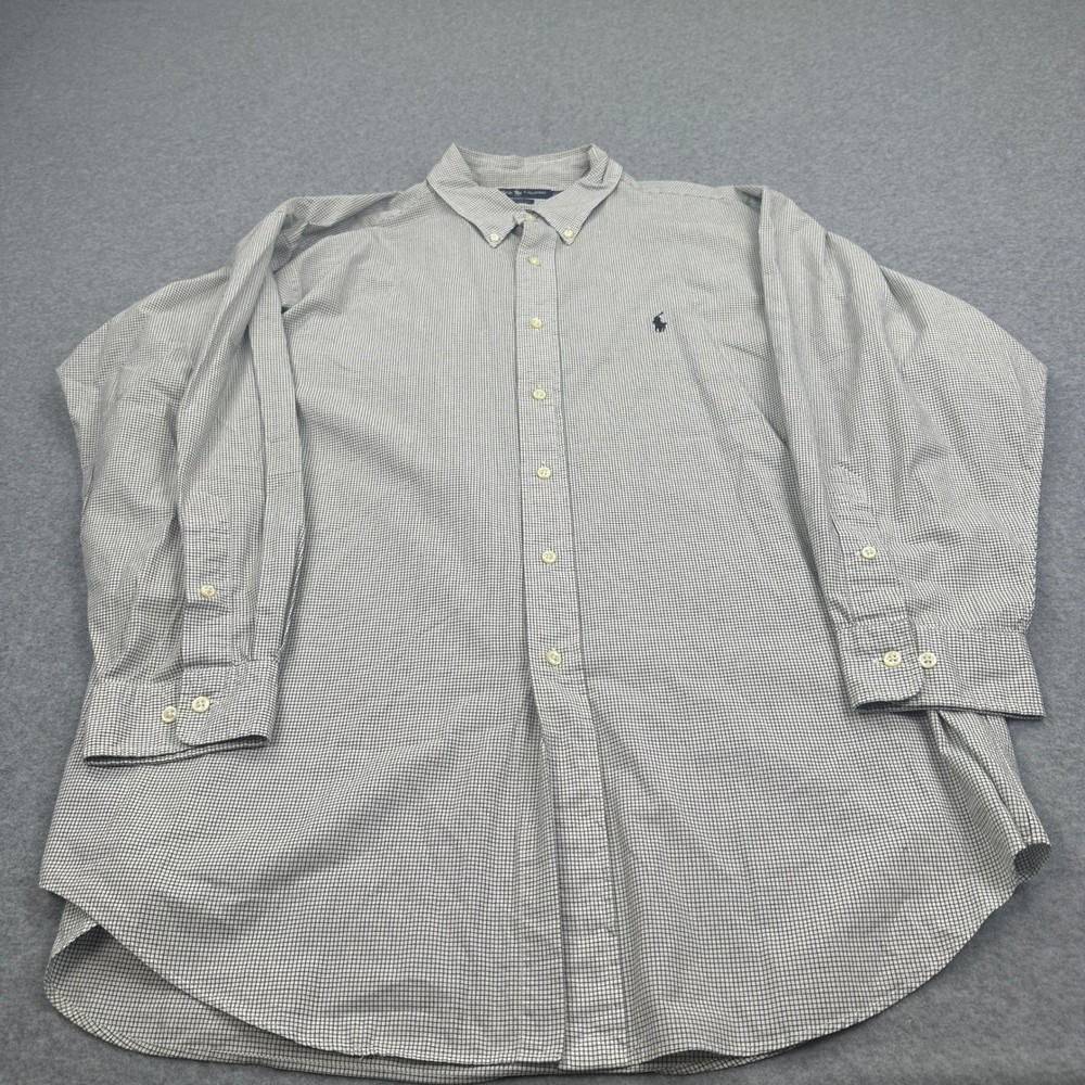 Collar Style: Button-Down Vintage: No Material: Cotton, 100% Cotton Color: White Size: 17 Top Cuff Style: Barrel Cuff Features: Easy Care Fit: Regular Pattern: Check Neck Size: 17 in Type: Dress Shirt Department: Men Size Type: Regular Sleeve Length: Long Sleeve Neckline: Collared Brand: Ralph Lauren Character: Classic, Preppy