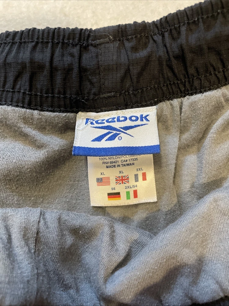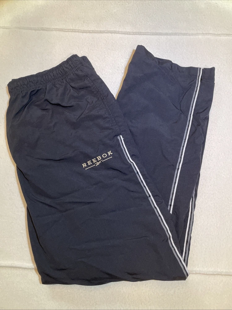 -Used. Sold as is -No rips or stains -See photos for measurements -Fast shipping!!! This Vintage Reebok Track Pants are designed for men in size XL, featuring a drawstring closure and ankle zips. Made of polyester softshell fabric, these black pants have a soft lining, making them windproof. The elastic waist and straight leg style offer a comfortable fit, suitable for activities like running, jogging, and training. The pants have pockets and a retro hip-hop style, perfect for casual wear or activewear with a vintage touch.