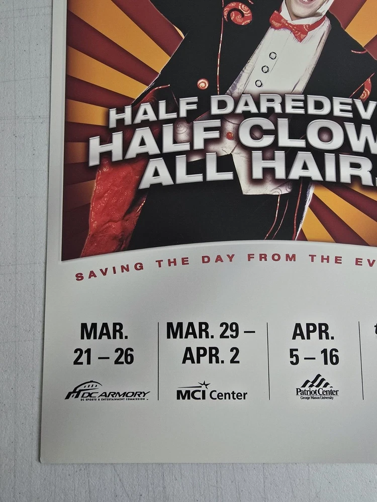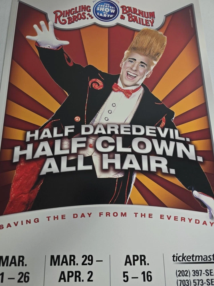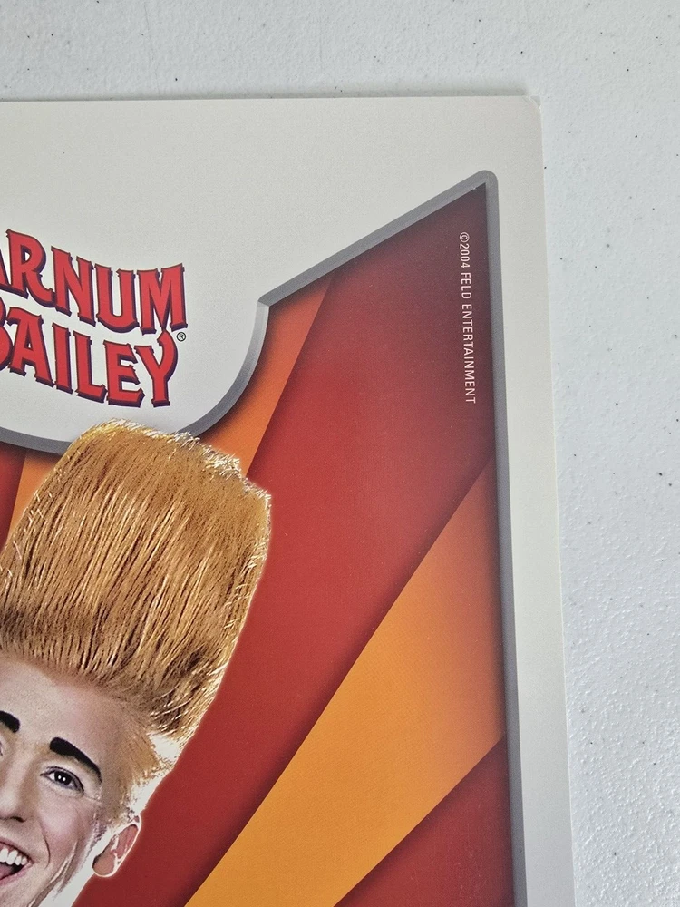 πͺβ¨ Step Right Up, Ladies and Gentlemen! Behold a Piece of Circus History! ππ€ΉβοΈ Are you ready to marvel at a rare treasure from the world of extravaganza? Presenting an authentic vintage Ringling Bros. and Barnum & Bailey Circus rigid poster from the 135th edition of "The Greatest Show on Earth" ! π This isn't just any poster; it's a thick, rigid display show board that once stood tall, luring in crowds with promises of dazzling performances and heart-stopping stunts! π π© What Makes This Display Board Spectacular? π© Unique Design : Featuring a show-stopping clown with an unforgettable hairdo and the catchy slogan: β** Half Daredevil. Half Clown. All Hair. β πβοΈ Quality Material : Unlike regular posters, this board is thick and rigid , perfect for display and durable enough to withstand the sands of time. No rolling up this masterpiece! Iconic Dates : Advertises show dates at DC Armory, MCI Center , and the Patriot Center from March 21 - April 16, 2004 . A golden era for the legendary circus! π Dimensions : Measures approximately 22 inches by 14 inches , giving it a commanding presence on any wall or display area. πͺ A Glimpse into Circus History πͺ The 135th edition in 2004 was a momentous year for Ringling Bros. and Barnum & Bailey, famous for their breathtaking performances and larger-than-life characters. Did you know? Fun Fact : The 2004 show introduced new acts and continued the tradition of bringing joy to millions around the world. This poster is a vibrant reminder of that magic! π Historical Significance : Known as "The Greatest Show on Earth," the Ringling Bros. and Barnum & Bailey Circus has an illustrious history dating back to 1871. Having a piece from the 135th edition is like holding a piece of legendary entertainment history! π π Condition π This rigid display board has been lovingly preserved and is in excellent vintage condition : Front : Vivid colors with minimal signs of wear. Some minor corner imperfections and slight shelf wear as seen in the photos, but nothing that detracts from its overall appeal. β¨ Back : Clean and mostly untouched, back side is blank as designed to focus all attention on the mesmerizing front. π§Ό π Perfect For: π Circus Enthusiasts : Add a unique and rare piece to your collection! π© Vintage Collectors : Own a piece of history from the most famous circus in the world! π Decor Enthusiasts : Brighten up your space with this vibrant, rigid display board! πΌοΈ Fun Fact Lovers : Impress friends with cool trivia about the 135th edition show! π Don't miss your chance to own a genuine piece of circus history thatβs sure to be a conversation starter and a cherished collectible! π€‘π Grab it now before it disappears into the annals of time! Note: This is a collectible item and not a toy. Please handle with care and keep away from children. π€Ή πͺβ¨