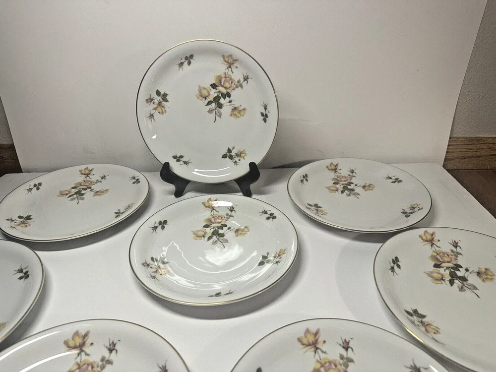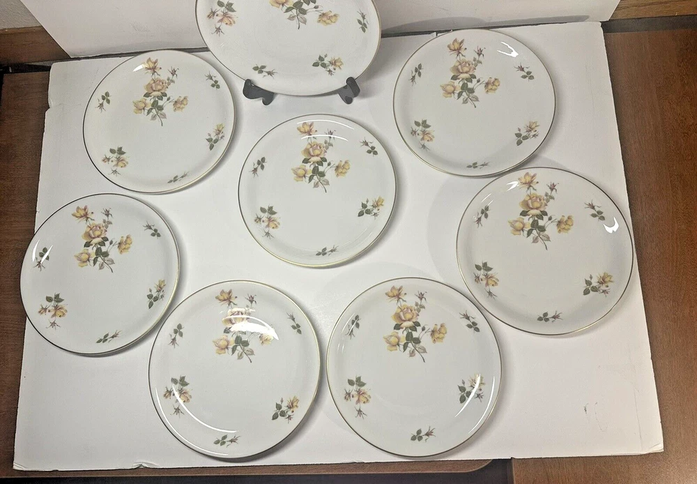 Set 8 ~ Vintage Rosenthal Charlene Lunch Plates Aida Yellow Rose Made in Bavaria Germany ~ Diameter 7 3/8" Designer: Raymond Loewy ~ Pattern: In great condition, there are no chips, cracks or stains. Thank you for looking. Check out my other items I have in my store. ~~Corner Side Variety~~ Items come from a smoke & pet free home Please view all of the pictures. I try to examine all pieces closely and note any issues. If you need more pictures or have any questions, please ask prior to purchasing, to ensure you are satisfied with your purchase. I strive for 100% customer satisfaction and value your positive feedback. If I charge for shipping, I will combine shipping with multiple purchases. Shipping and Handling includes a tracking number. NOTE: Depending on final packing & your zip code, I may use FedEx or UPS instead of USPS.