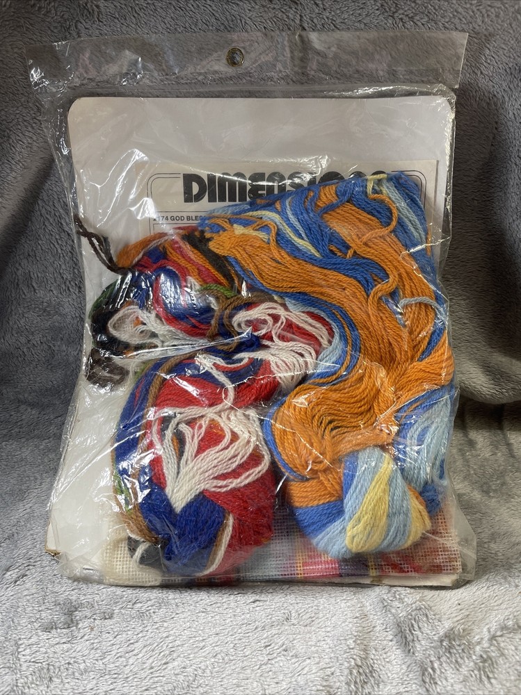 This vintage Sara Gutierrez Dimensions needlepoint kit is a patriotic masterpiece. With the theme of "God Bless America" and featuring the American flag, this kit is perfect for any lover of American history and culture. The kit includes everything you need to create a beautiful, high-quality hand-embroidered picture, including dimensions and brand information. The kit is designed for those who enjoy crafts and needlecrafts, especially hand embroidery. The format is a picture kit, making it easy to create a beautiful and realistic image of the American flag. This kit is perfect for anyone who loves flags and political themes, or simply wants to create a beautiful and meaningful piece of art. The side of the package is torn. See pictures. Unable to determine if needle is still with package.