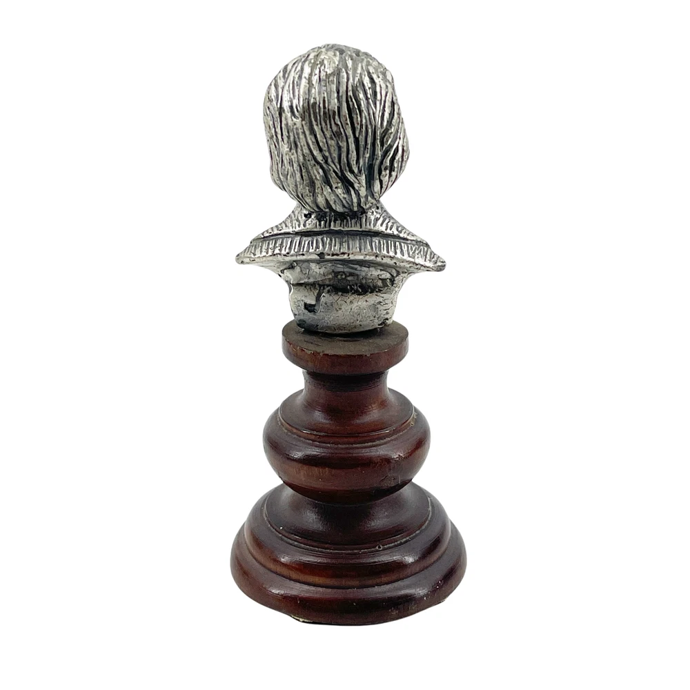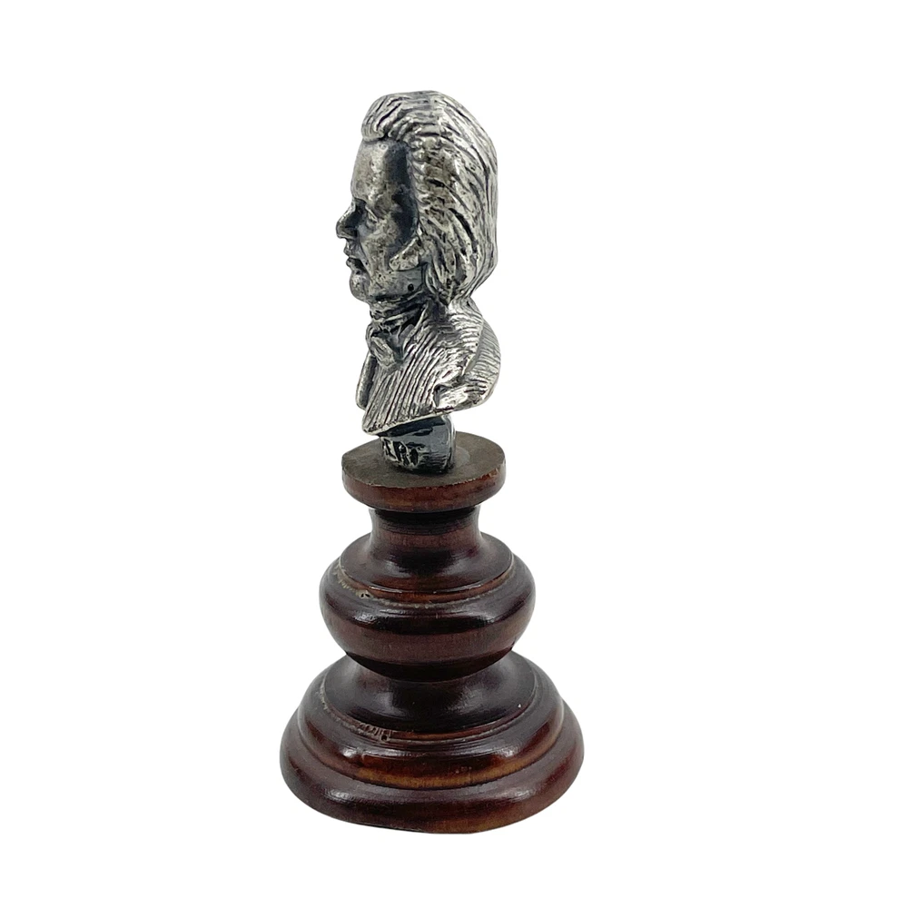 VTG Solid Pewter Head Bust of Franz Schubert Miniature on Wood Pedestal Music