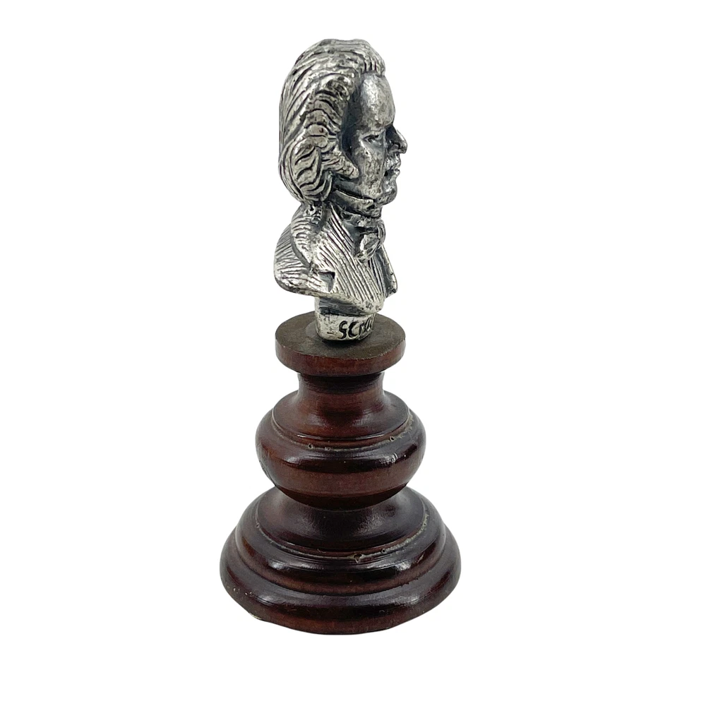 HomeVTG Solid Pewter Head Bust of Franz Schubert Miniature on Wood Pedestal Music