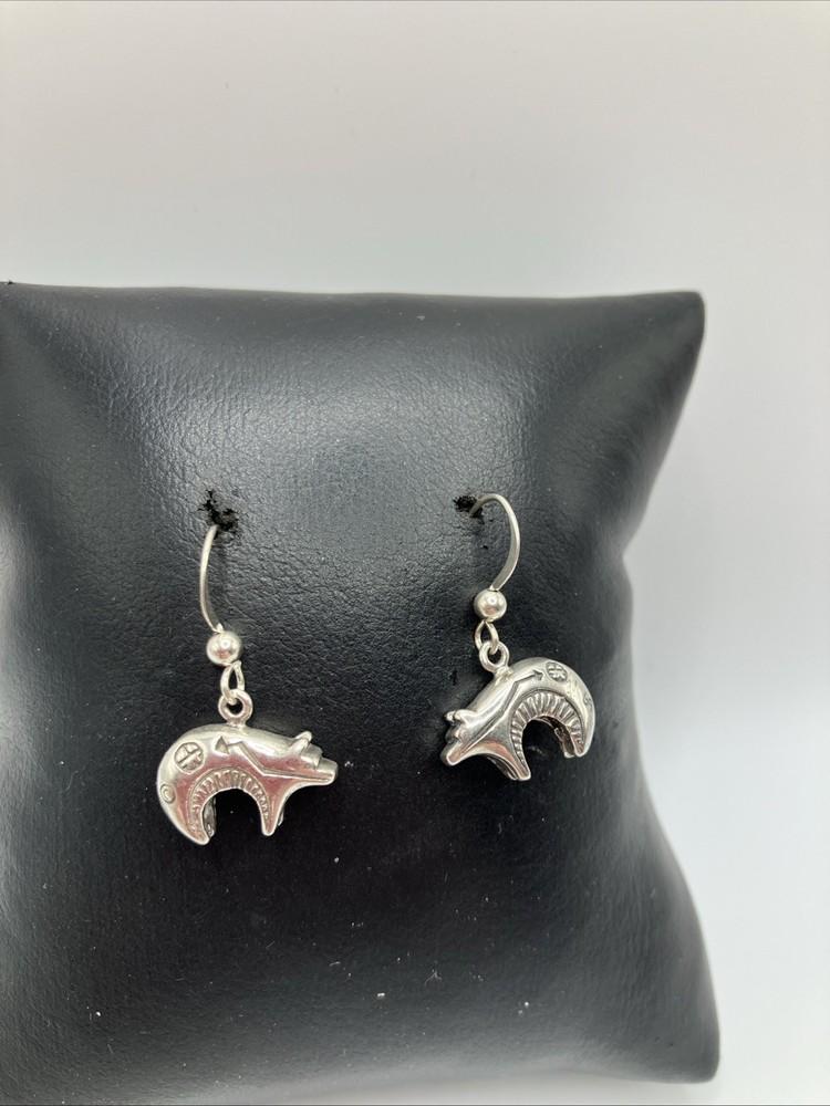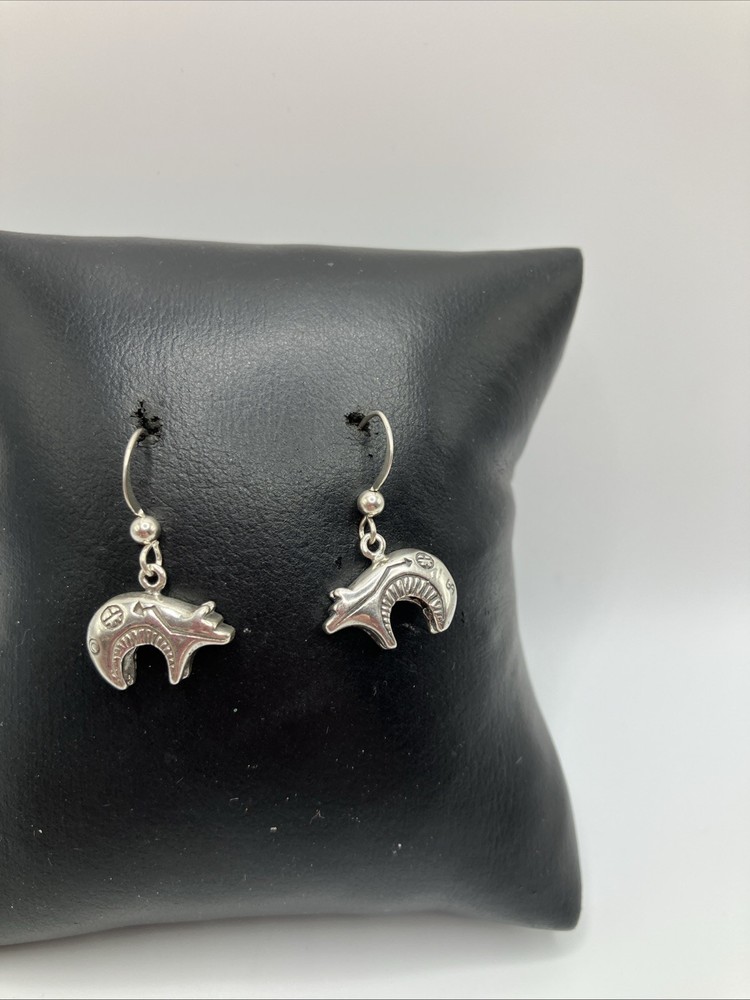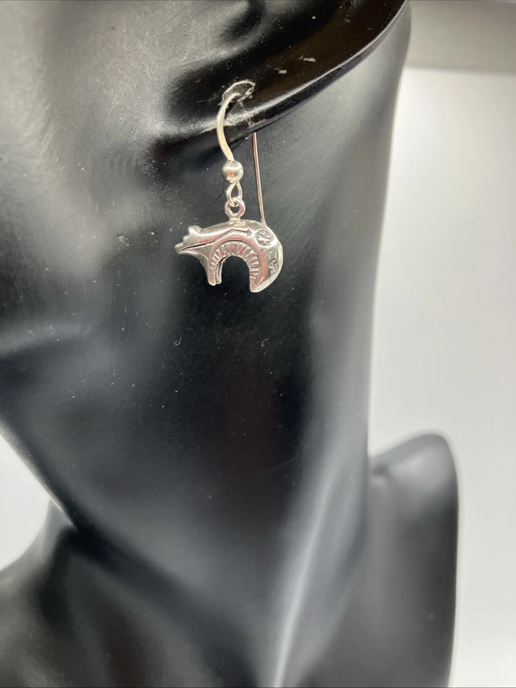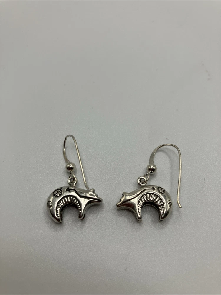 These beautiful vintage Bear earrings are crafted from 925 sterling silver and weigh 5.5 grams. Copper colors are skin tone reflections. Very Nice condition, some scuffs and scratches, needs a polish. PLEASE CHECK OUR OTHER AUCTIONS AS WE HAVE A LARGE COLLECTION OF SOUTHWEST STERLING JEWELRY. ALL LISTINGS STARTING AT .99 NO RESERVE. PLEASE FEEL FREE TO ASK ANY QUESTIONS . THESE ITEMS ARE VINTAGE OR ANTIQUE AND SHOW SOME SORT OF USE NONE ARE BRAND NEW. WE DO ACCEPT RETURNS IF NOT AS DESCRIBED! WE DO COMBINE AUCTIONS THANK YOU