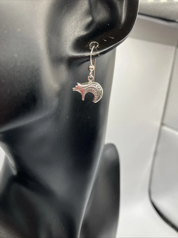 $ 15.84RUNNING BEAR Sterling Silver Navajo DANGLE EARRINGS Blue Turquoise SCROLL TRIM