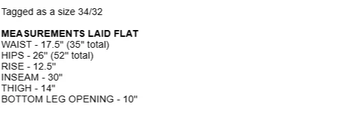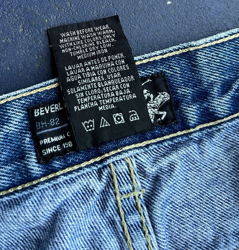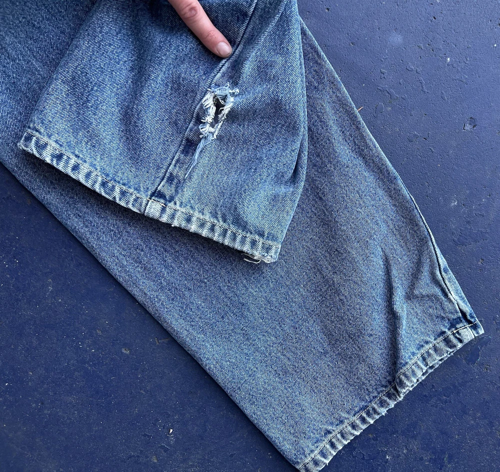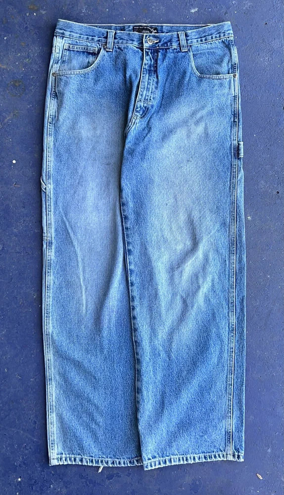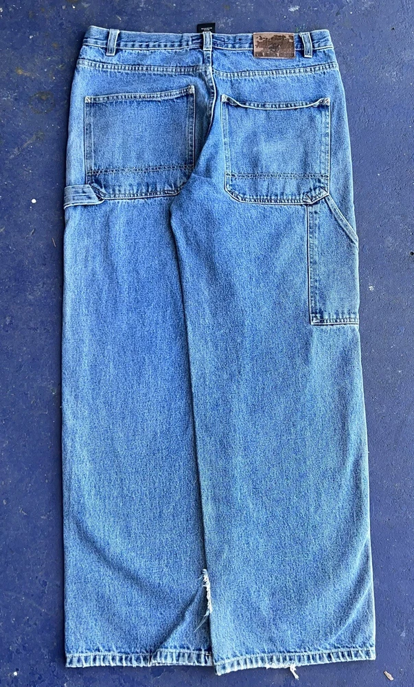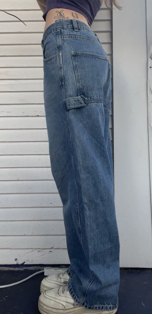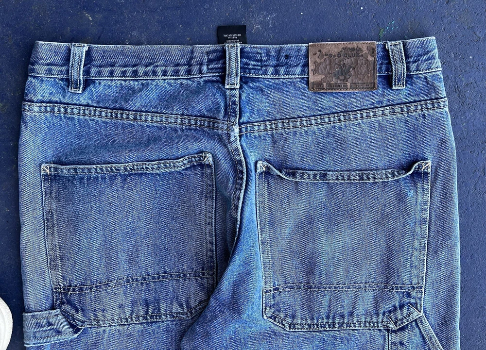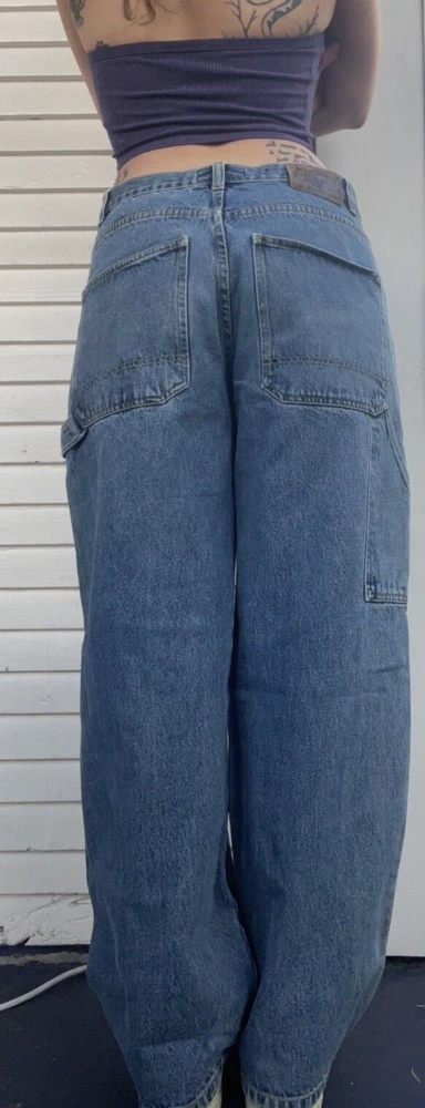 Gorgeous super baggy carpenter blue jeans from Beverly Hills Polo Club. The perfect wide leg low rise baggy jeans ! Its giving summer grunge. It's giving beachy skater. You know the vibes. In OK used condition with distressing and one hole near the hem of the pants. Some small discolorations. They definitely still have a lot of life left in them though! Just on the grungier/ distressed side. Tagged as a size 34/32 MEASUREMENTS LAID FLAT WAIST - 17.5'' (35'' total) HIPS - 26'' (52'' total) RISE - 12.5'' INSEAM - 30'' THIGH - 14'' BOTTOM LEG OPENING - 10''