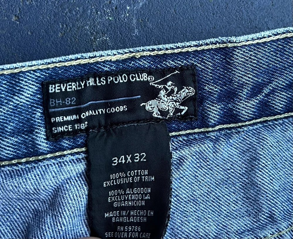 Pocket Type: 5-Pocket Design Style: Wide-Leg Type: Jeans Country/Region of Manufacture: Bangladesh Size: 34 Fabric Wash: Light Garment Care: Machine Washable Brand: Beverly Hills Polo Club Features: Pockets Pattern: Solid Theme: Grunge Material: Cotton Accents: Embroidered Inseam: 32 Color: Blue Season: Spring, Summer, Winter, Fall Department: Men Closure: Zip, Button Fabric Type: Denim Size Type: Regular Fit: Relaxed