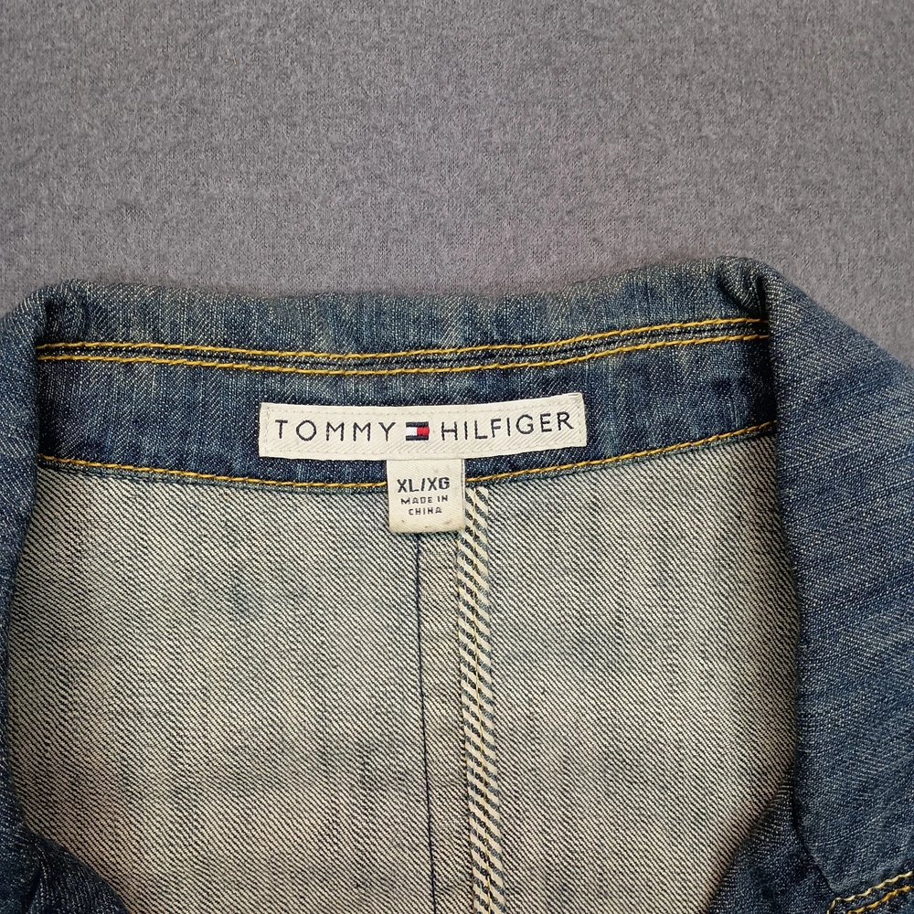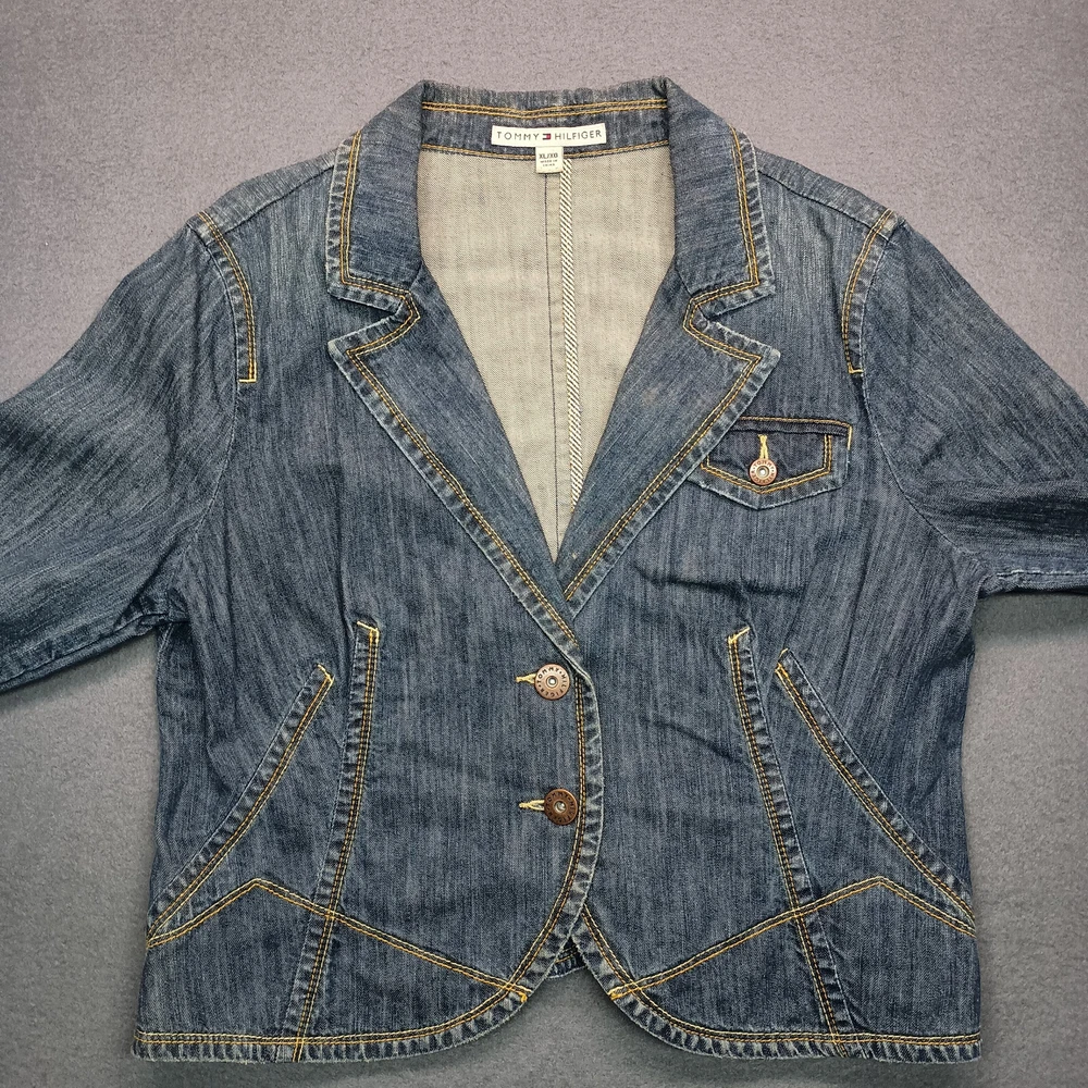 VTG Tommy Hilfiger Denim Blazer Womens XL Elbow Patches Two Button Jacket Y2K Excellent pre-owned condition. No obvious flaws. See photos for measurements.