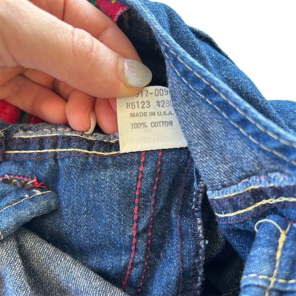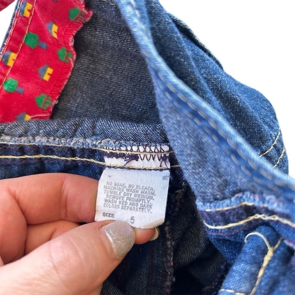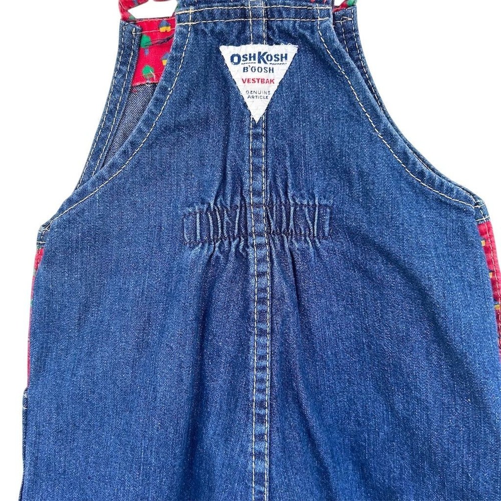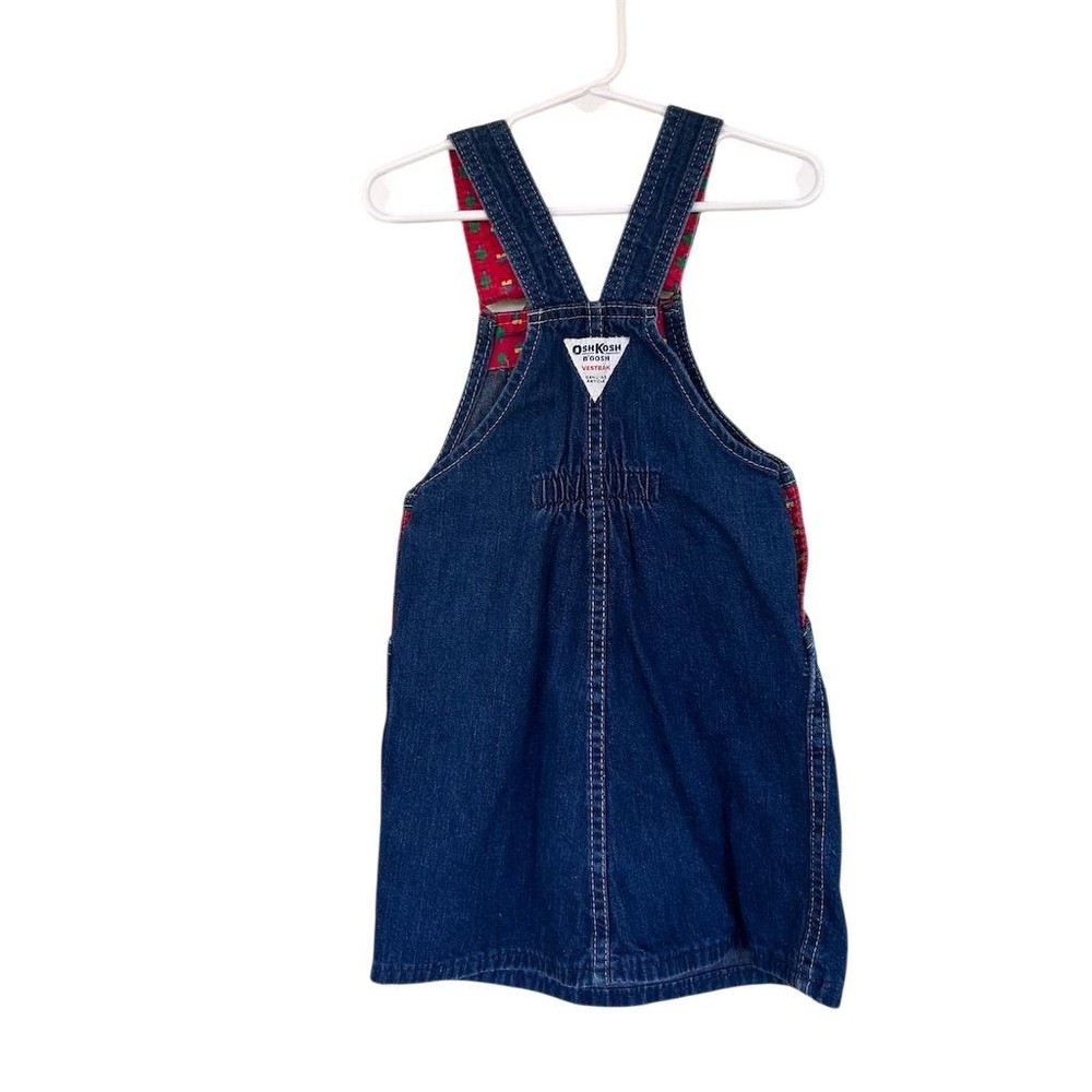 A classic OshKosh B'gosh denim overall dress with charming red straps featuring a whimsical tree print. This adorable piece offers a comfortable and playful silhouette perfect for everyday adventures. Its durable denim construction ensures it can keep up with active little ones, while the vibrant print adds a touch of fun. Ideal for park visits, playdates, or casual outings. Measurements: • Chest: 13 in • Length: 22 in • Waist: 12 in All items come from a smoke free, pet friendly home. All of items unless NWT or Dry Clean Only are washed with Tide. We try our best to disclose any flaws with items, if we miss something please reach out and let us know. We offer combined shipping on all our items. We do take measurements of our clothing listed for sale. Please compare the measurements to something you already own.