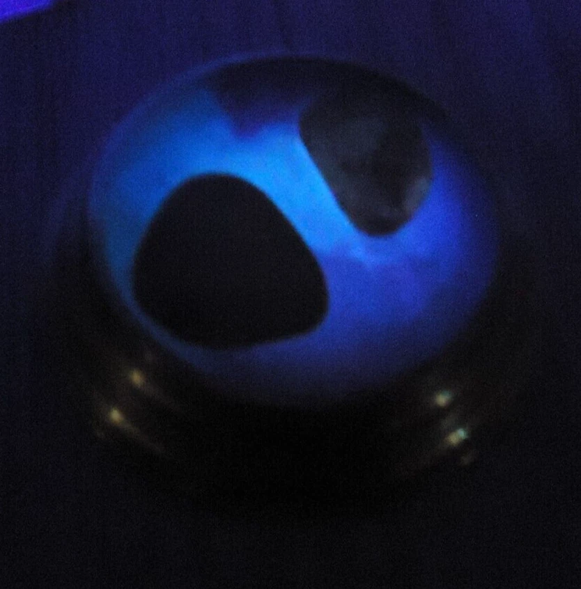 Glow Brass Enamel/Resin(?) and Stone Paperweight Made in Greece. Maximalist VTG MCM Black Light Responsive. Please see all pictures. Preowned, great condition. Glows in blacklight. Lr
