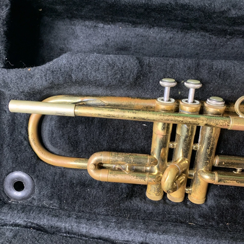 VTG Vincent Bach Bundy Trumpet w/ Hard Case "For Parts or Repair" USA. Very poor condition. Dents. Heavy wear. Most slides are stuck. As-is.