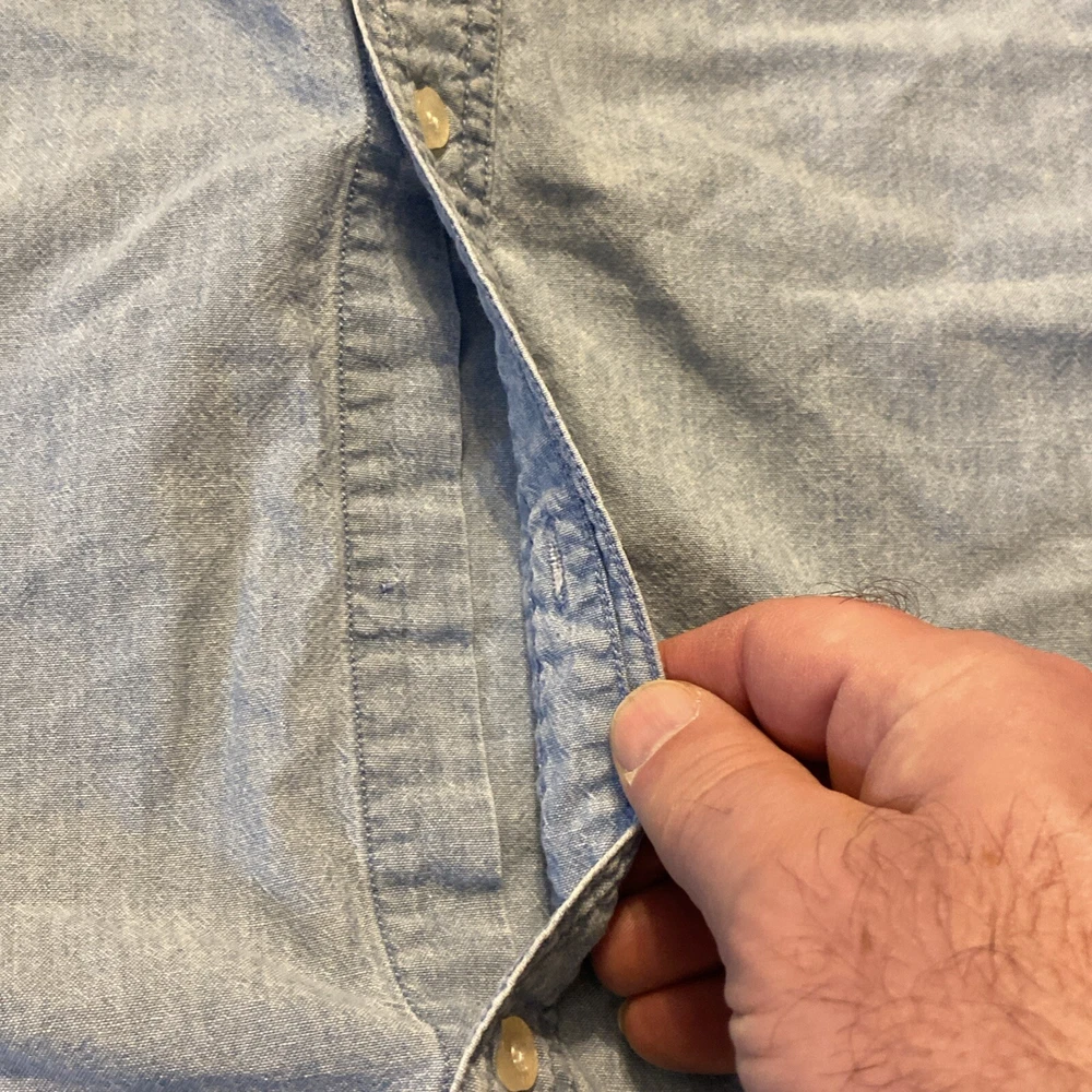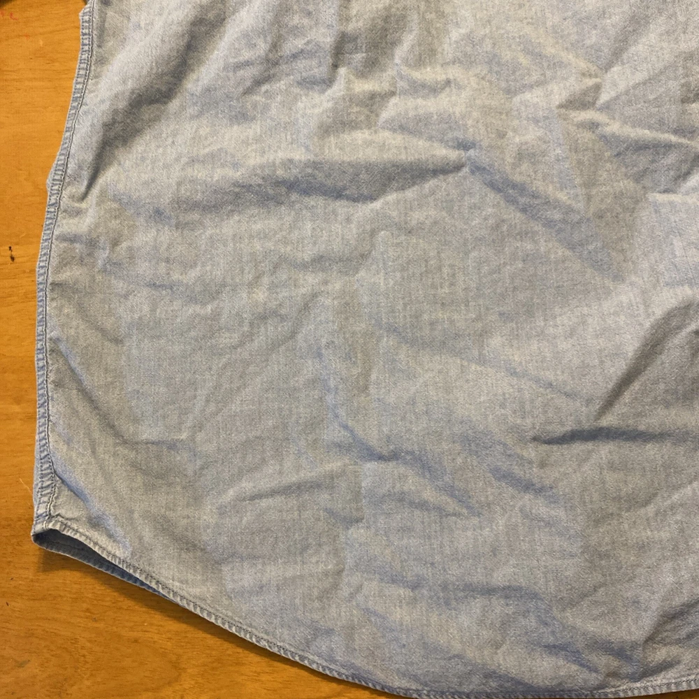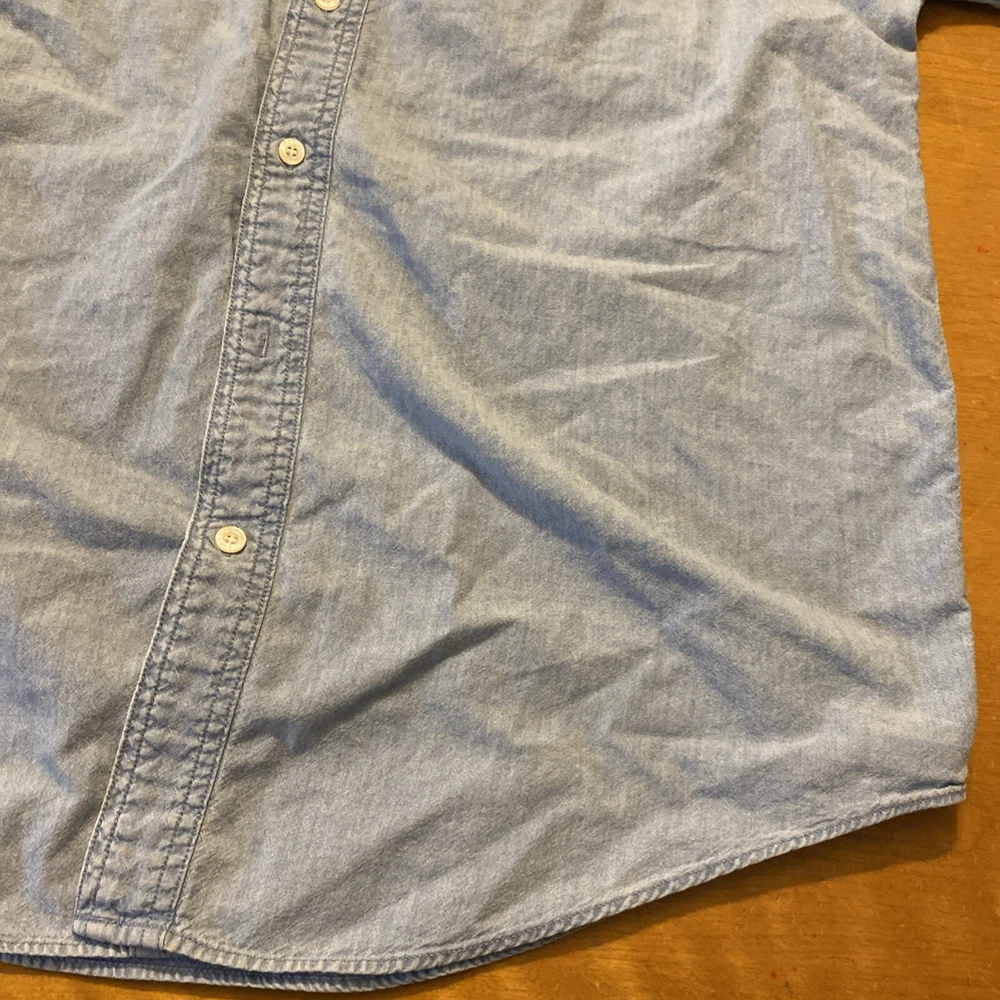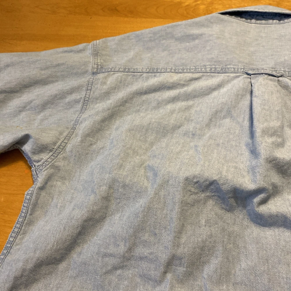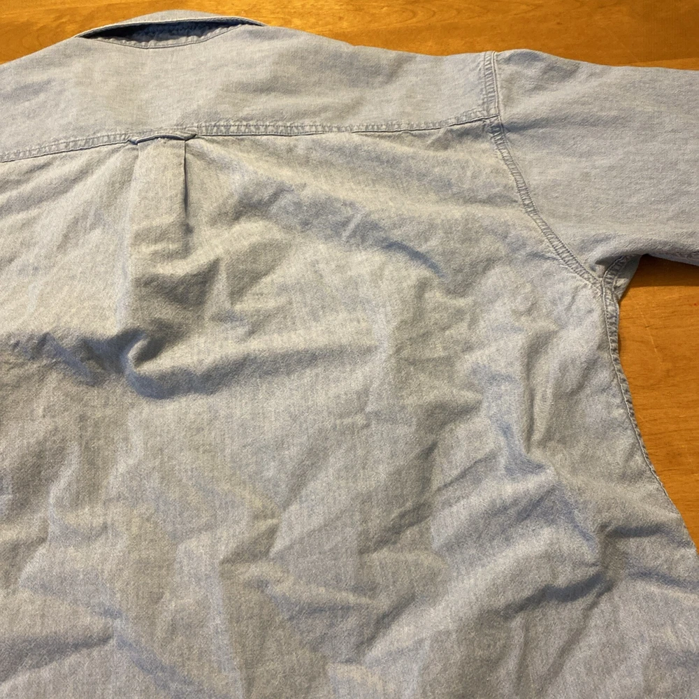 This vintage Warner Bros. Looney Tunes denim shirt is a must-have for any fan of the classic cartoon series. The shirt features beloved characters such as Bugs Bunny, Tweety Bird, Daffy Duck, Taz, and even the Martian. The blue cotton material is comfortable and durable, making it perfect for everyday wear. This shirt is pre owned please look over pictures and measurements The