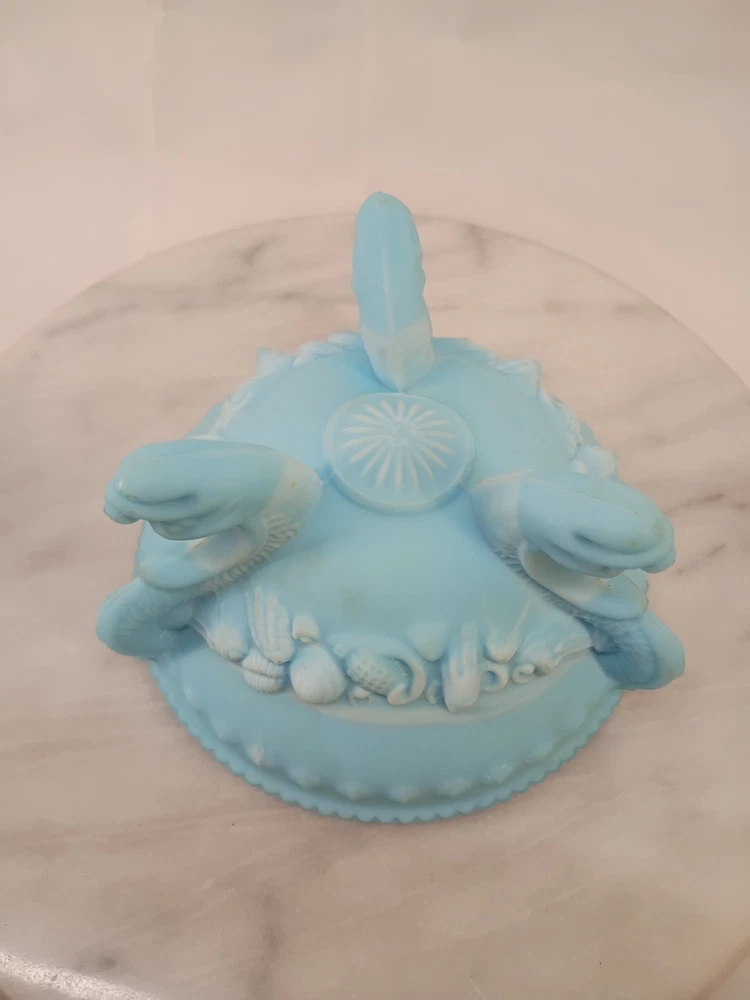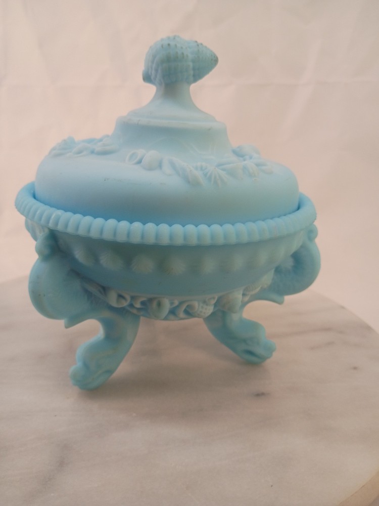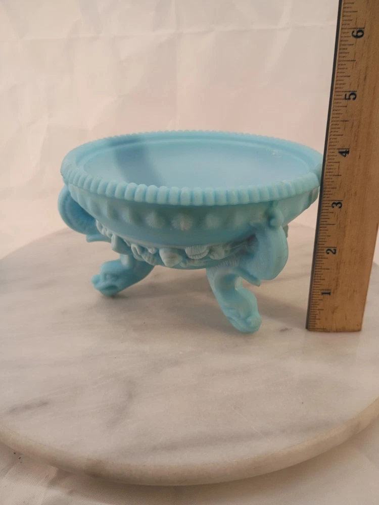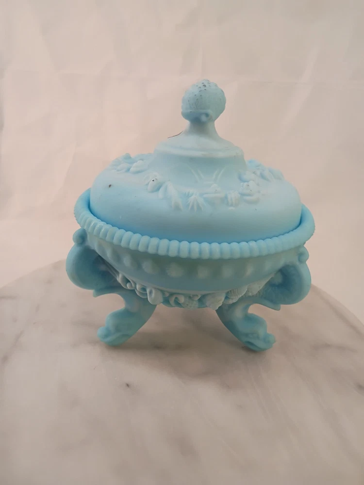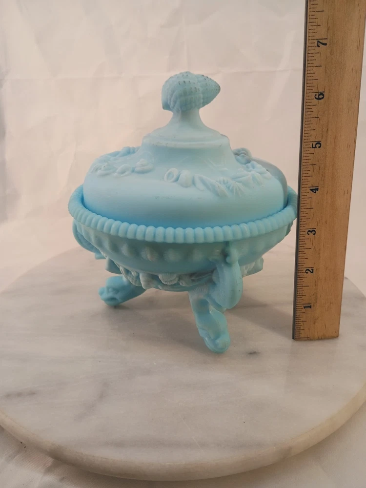 The VTG Westmoreland Frosted Blue Opaline Dragon Footed Candy/Trinket Glass Dish is a decorative collectible that exudes elegance and charm. Made by the renowned brand Westmoreland, this original piece features a stunning blue color that adds a touch of sophistication to any space. The intricate dragon feet and frosted design make it a standout item for collectors of decorative glassware. Perfect for displaying candies or trinkets, this dish is sure to be a conversation starter in any home. Thank you for visiting my listing today and thank you for your interest in this item! My goal is to have a pleasant transaction resulting in a satisfied customer. I hope any transaction between us leaves you with a feeling of confidence knowing you can trust me and the items I offer here. *Most if not all my listings are set to accept offers. Feel free to send an offer and I will be happy to consider it!! *Please contact me with any questions or concerns and I will be happy to help. *Always examine the photos carefully, and if in doubt, email me with any questions you may have. *Please note that condition statements are offered as a guide only. They will always be somewhat subjective and reflect our opinion, which may not necessarily agree with someone else's opinion. PLEASE READ: I aim to please and I want my buyers to have a positive transaction with me. If you have questions, concerns, or special requests related to any of my items I hope you will contact me so we can work them out to your satisfaction. I sell my items to give you a great item at a decent price while making a little profit at the same time. If you feel the item you are interested in is too pricey do not hesitate to send me a fair offer and I will consider it. My goal is to satisfy your needs and mine so both parties can benefit. SHIPPING: If you prefer a different shipping method or company please contact me and I will do all I can to make that happen. If you have concerns or requests about the packaging of your item contact me and I will do all I can to accommodate them. Shipping costs are based on location in each state or country, the costs always differ. After I have received your payment I will ship your item out within 3 business days or less excluding weekends and holidays. BEFORE PURCHASING & BIDDING: **Please see all the pictures. I do not have great photography skills but I try to get the most accurate photos I can. If you are unsure about something you see in a photo contact me so I can do what I am able to answer your concern about the item. **I cannot stress enough that if you have any questions or concerns please contact me before purchasing and bidding. Communication can solve so much. **As a customer myself, I understand the meaning of customer satisfaction and my goal is to have nothing but satisfied customers. If you are not unsatisfied with your purchase I ask that you please contact me so I can take care of your issue. My goal is for you to be 100% satisfied. INTERNATIONAL BUYERS WELCOMED - PLEASE NOTE: I welcome International buyers! Please be aware that any custom/duties/taxes that the parcel might incur once it is out of the USA are the responsibility of the buyer. Please check with your country's customs office to determine what these additional costs will be prior to bidding or buying. Please refer to the eBay Site Map for more information if needed.