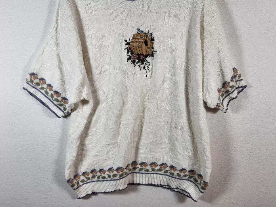 Department: Women Seller Notes: “EUC” Size Type: Regular Size: XL Sleeve Length: Short Sleeve Color: Beige Style: Pullover Fabric Type: Knit Brand: Amana Type: Sweater Theme: Bird