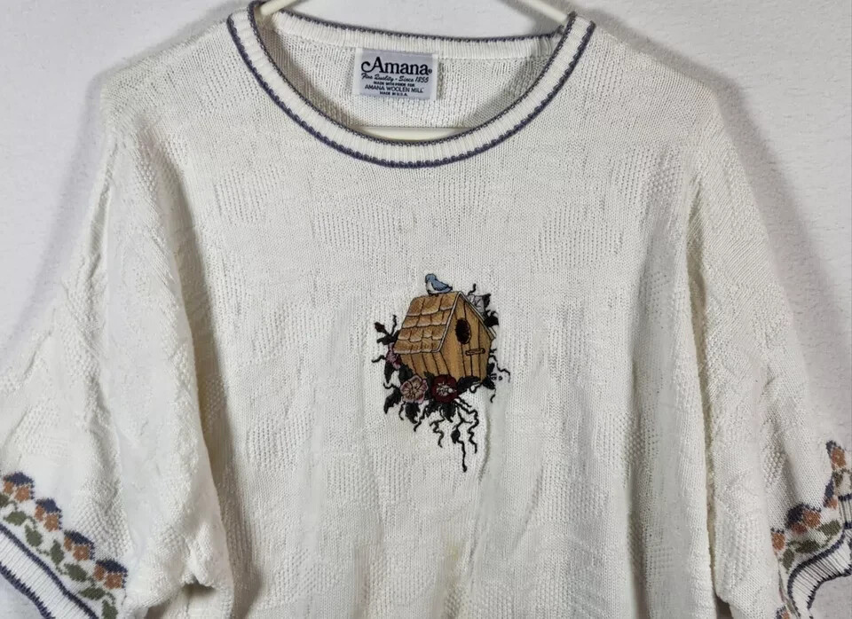 VTG Women's Grandma Short Sleeve Sweater Amana Woolen Mill SZ XL Birds Granny Please see pictures for measurements. Thanks for looking!