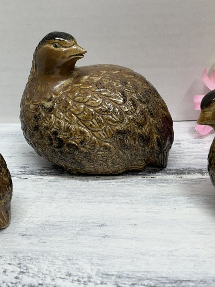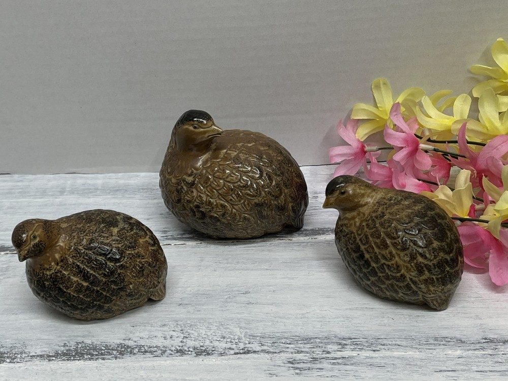 VTG Wony Japan Ceramic Quail Birds family Set Of 3 Mom and Babies Hunting Cabincore. Great preowned condition. No chips or cracks. Great for cabin decoration or rustic decoration. See all pictures I have provided. Thank you Shipped with USPS Ground Advantage.