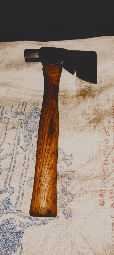 This vintage blacksmith's hatchet is a must-have for any woodworking enthusiast. The octagonal head provides a comfortable grip, while the wooden handle adds a touch of classic style. This hammer is perfect for driving nails, shaping metal, and even as a decorative piece for your workshop. The country/region of manufacture is unknown, adding to the mystery and intrigue of this unique tool. Whether you're a collector or a craftsman, this vintage hatchet is sure to impress. Please view the photos