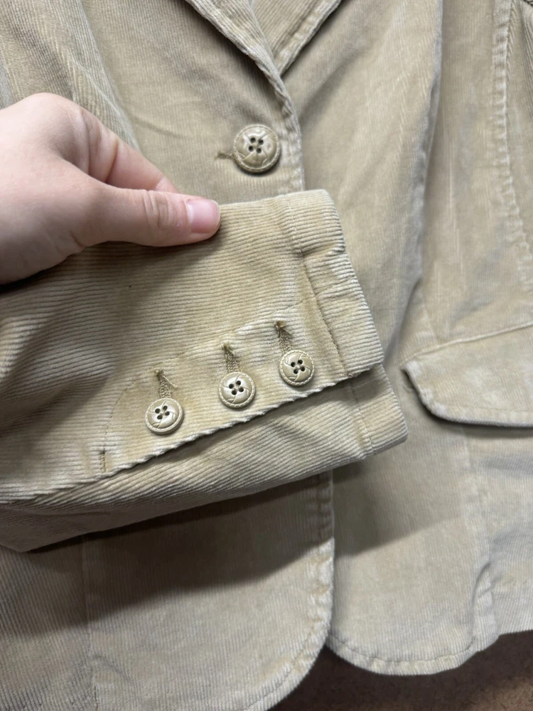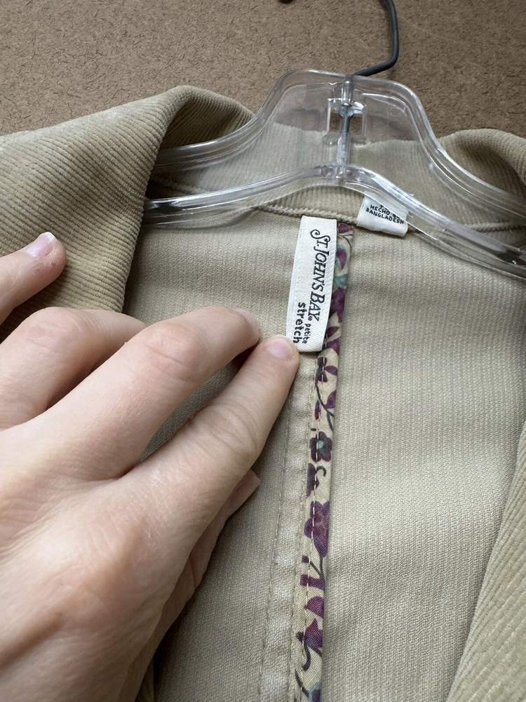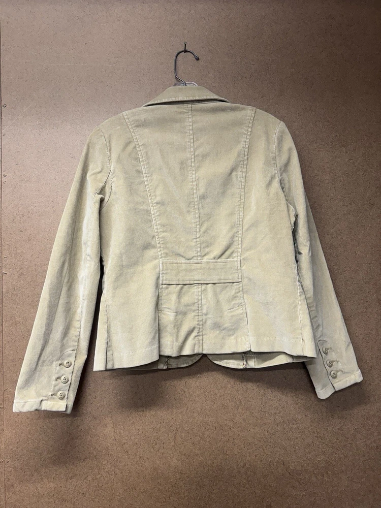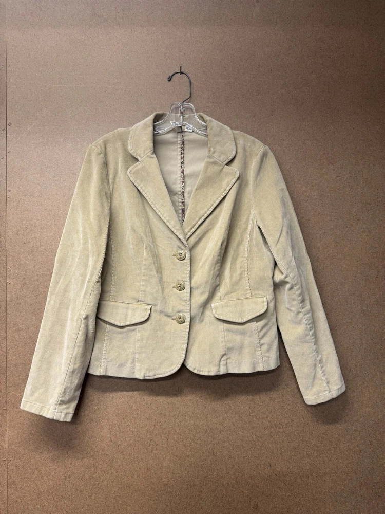 Pre-owned, gently worn. Size Petite medium. Pit to pit measurements in photos. Has a little stretch to it.