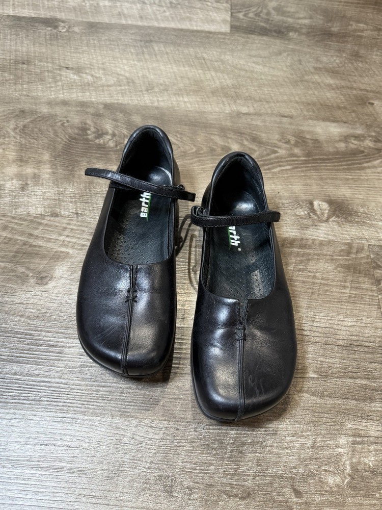 Country of Origin:United StatesUS Shoe Size:5Department:WomenUpper Material:LeatherColor:BlackBrand:EARTHStyle:Mary JaneTheme:USACharacter:MarieType:Flat