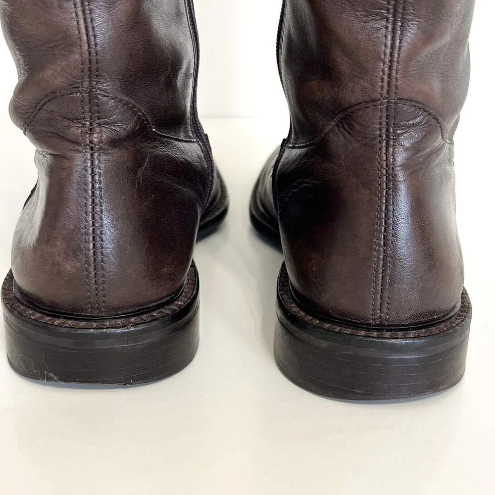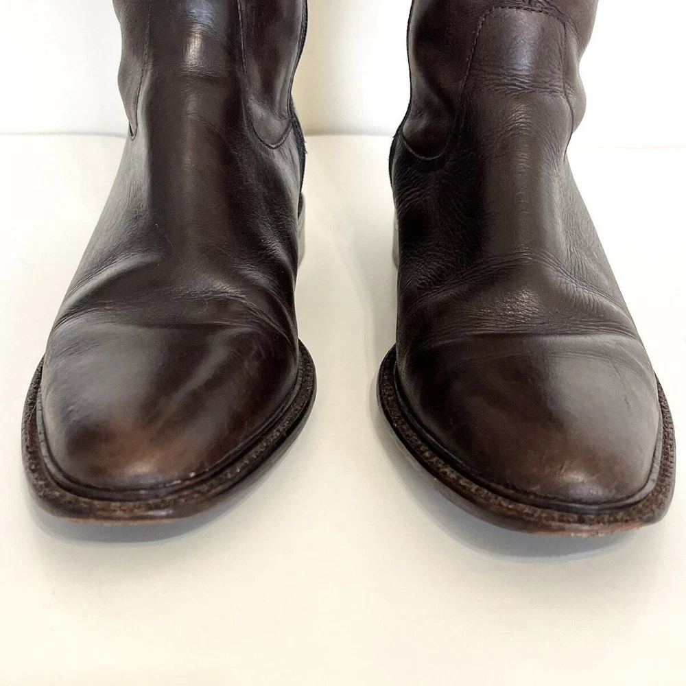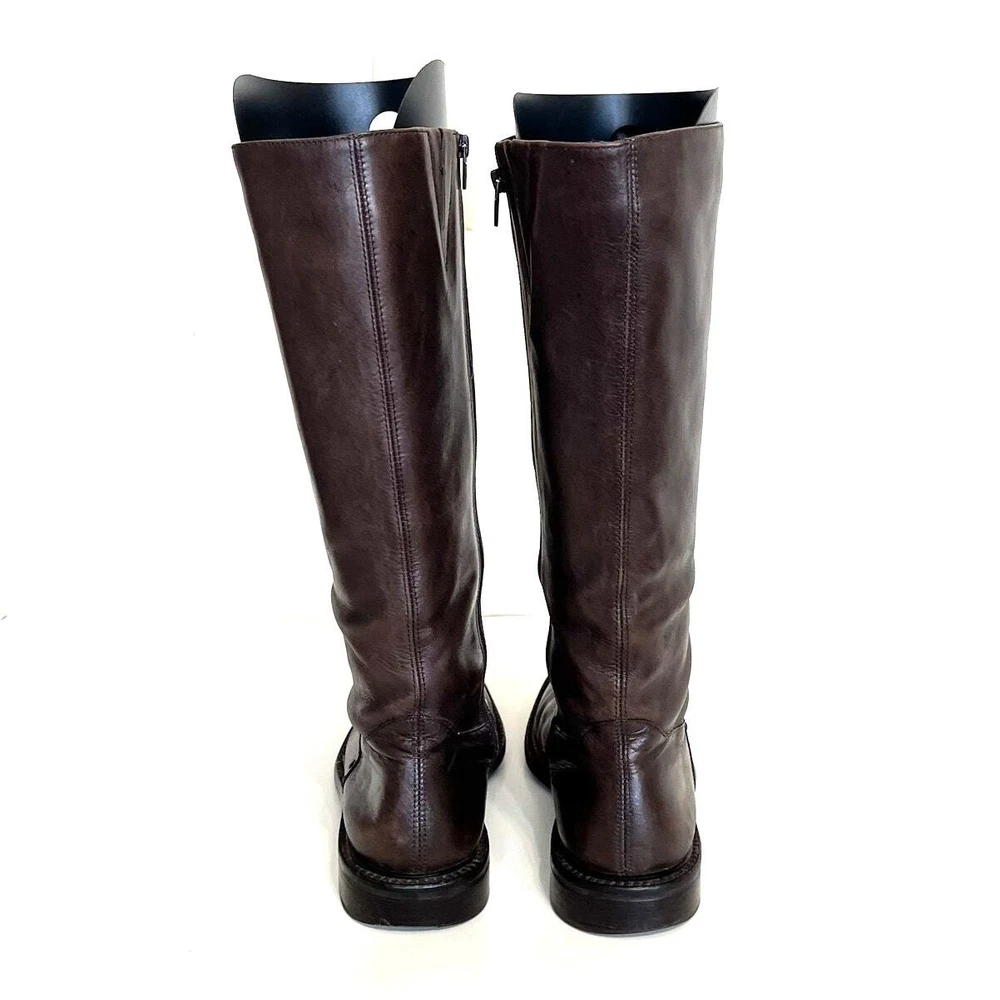 Espresso Chocolate Brown Expedition Vintage 90s Y2K Leather Eddie Bauer Safari Riding Equestrian High Definition Western Rodeo Cowgirl Boots Butter soft leather Pointed Toe Zip closure Made in Brazil Sz 8M Heel 1 Shaft 13 Circumference 15 Good condition with some wear to soles pls see all pics