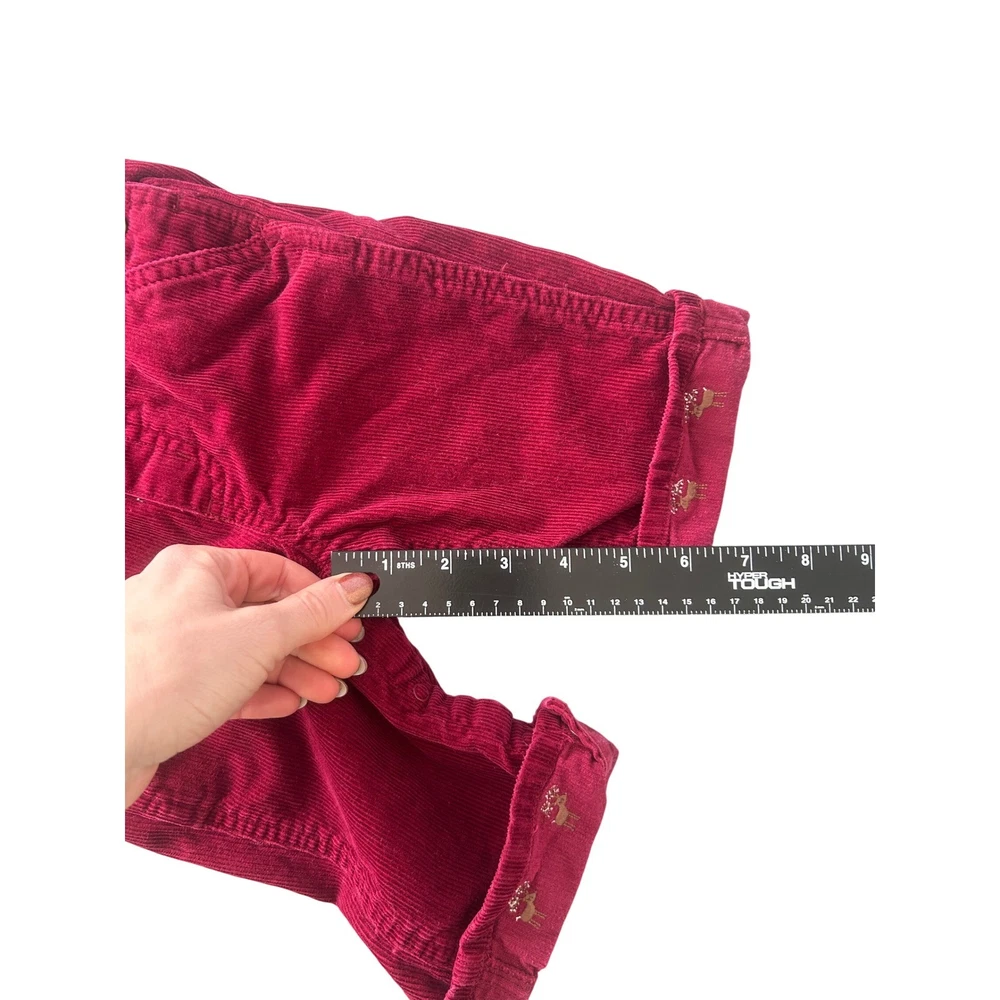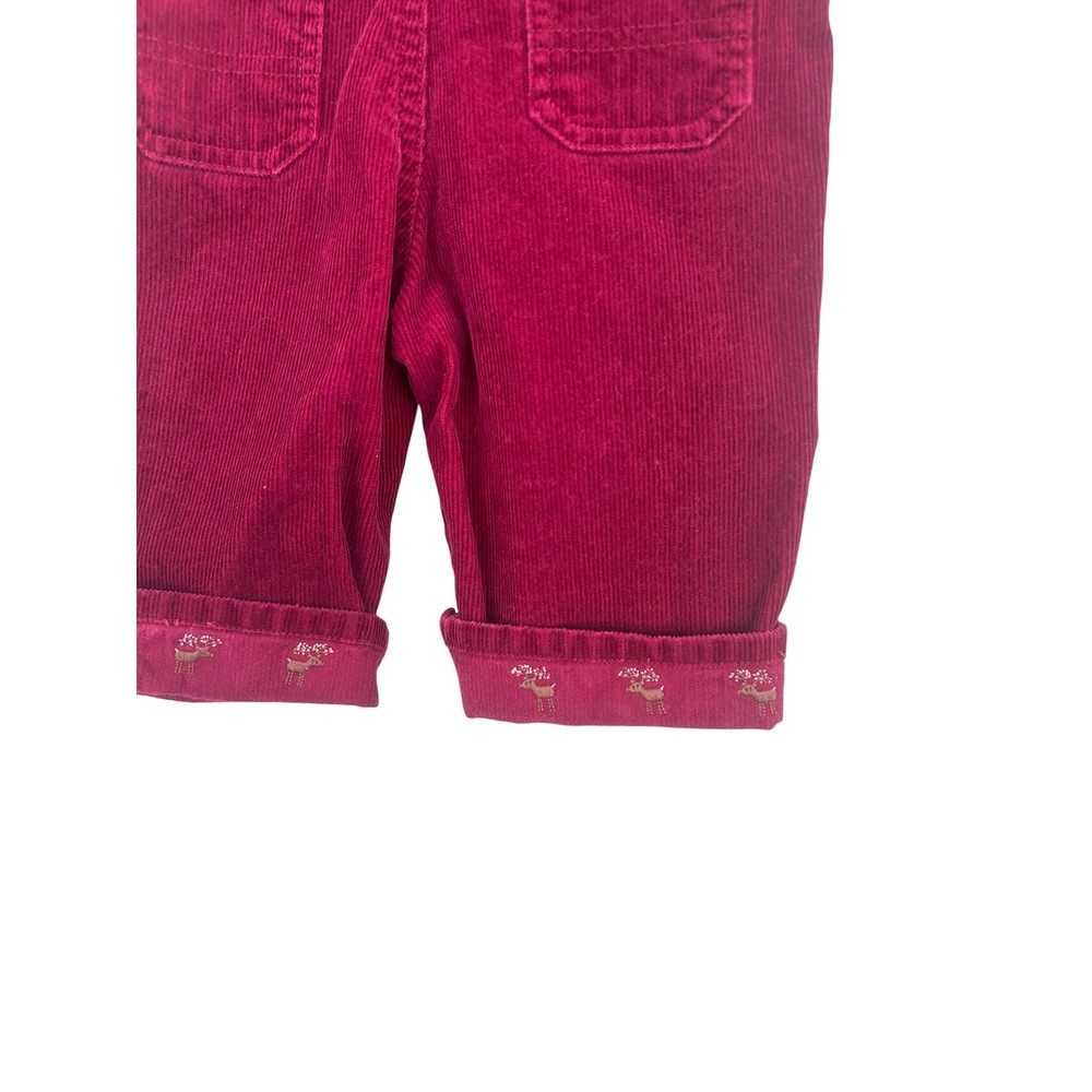 Burgundy red corduroy overalls for baby from Gymboree. These adorable overalls feature adjustable straps, a bib pocket with snap closure, and side snaps for easy dressing. The cuffs are rolled and adorned with a charming embroidered reindeer pattern, adding a festive touch. Perfect for holiday gatherings or everyday wear during the cooler months. Measurements: • Waist: 10 in • Inseam: 7 in • Length (strap to cuff): 22 in Department: Unisex Baby & Toddler Season: Fall, Winter Theme: Deer Style: Overall Set Includes: Pants Number of Pieces: 1 Piece Fabric Type: Corduroy Pattern: Solid Material: Cotton Occasion: Casual Features: Adjustable Strap, Pockets Accents: Embroidered, Button Sleeve Length: Sleeveless Type: Outfit/Set Keywords: baby overalls, corduroy pants, holiday baby, winter baby, Christmas outfit, festive baby, embroidered, snap closure, rolled cuff, baby fashion, fall baby, baby apparel All items come from a smoke free, golden retriever dog friendly home. All of items unless NWT or Dry Clean Only are washed with Tide. We try our best to disclose any flaws with items, if we miss something please reach out and let us know.