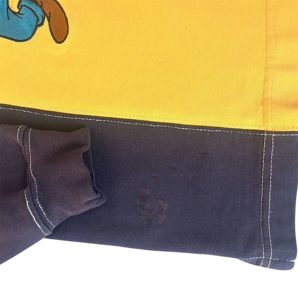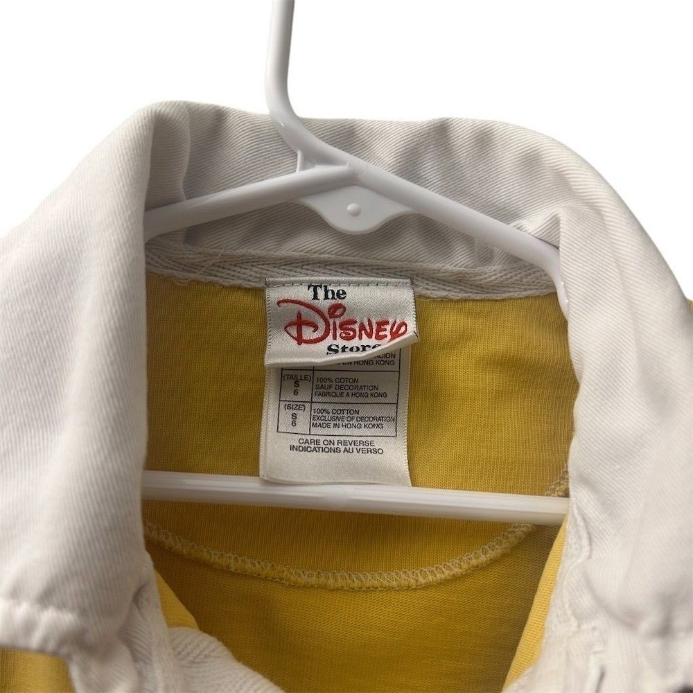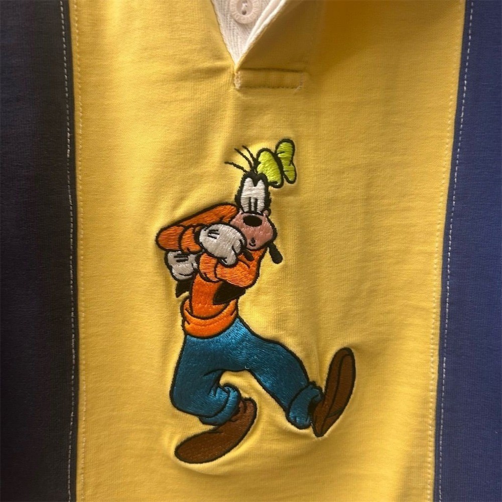 Kids Disney Store rugby shirt featuring Goofy in an embroidered graphic. This long sleeve top has a classic polo collar with a button placket and a color block design in yellow and navy blue. Perfect for casual outings or themed park visits. Fading present and stain noted please review pictures. Department: Unisex Kids Type: Polo Sleeve Length: Long Sleeve Character: Goofy Theme: Disney Closure: Button Fabric Type: Cotton Performance/Activity: Rugby Pattern: Colorblock Material: 100% Cotton Neckline: Collared Style: Pullover Features: Contrasting Trim, Breathable Fit: Regular Accents: Embroidered, Logo Keywords: Disney Store, Goofy graphic, color block, polo shirt, long sleeve, kids apparel, childrens wear, character shirt, casual top, theme park, cotton blend, playtime, school, everyday All items come from a smoke free, pet friendly home. All of items unless NWT or Dry Clean Only are washed with Tide. We try our best to disclose any flaws with items, if we miss something please reach out and let us know. We offer combined shipping on all our items. We do take measurements of our clothing listed for sale. Please compare the measurements to something you already own.