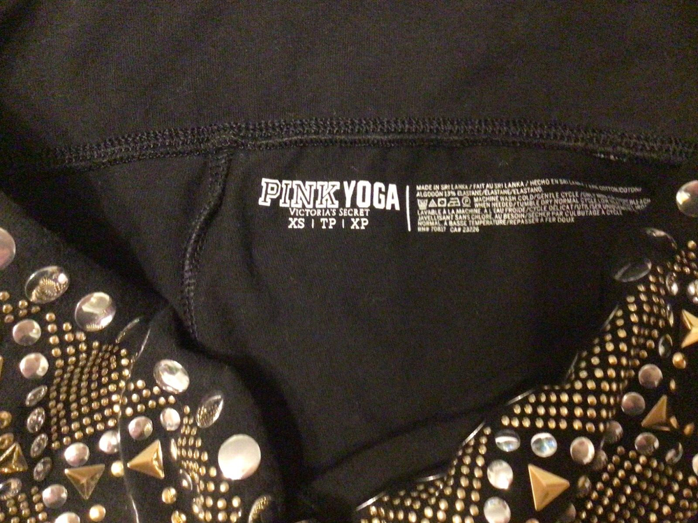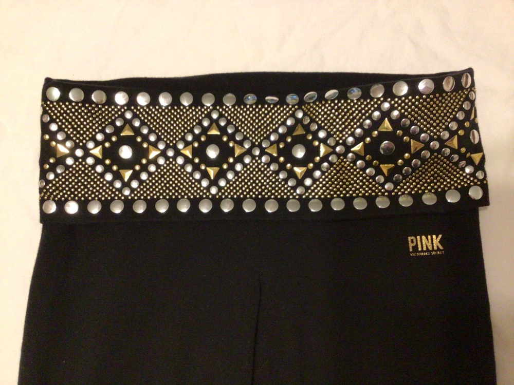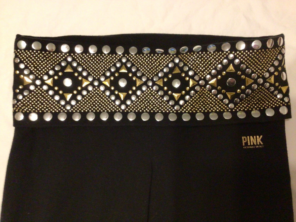 You are buying rare vintage Y2K 2000s, Victoria's Secret, PINK, bling gold and silver tone studded, fold over waist, yoga pants. The pants are size XS with a bootcut flare leg. They are in great condition, no studs are missing. Sorry I do not accept returns. All sales are finale. thanks for looking.