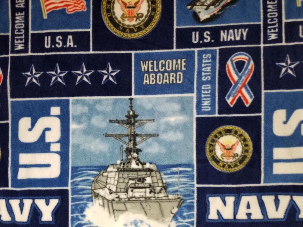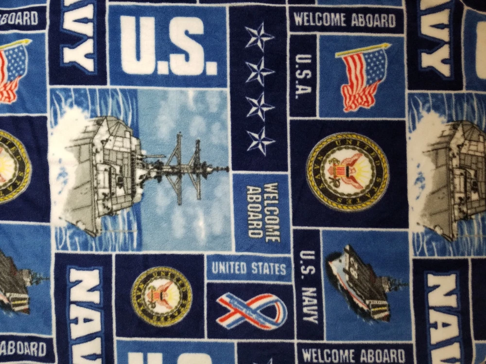 Fiber Content: Synthetic Handmade: No Pattern: navy emblem,stars,ships,flags,USA Color: Blue Material: 100% Polyester Features: Anti-Pill, Colorfast Suitable For: Bedding, Blankets/Throws, Crafts, Pillow, no-sew tie blanket Model: United States Navy 012 Length/Amount: By the Yard Unit of Sale: by the yard 36" X 60"/62" Brand: Sykel Width: 60" Theme: United States Navy