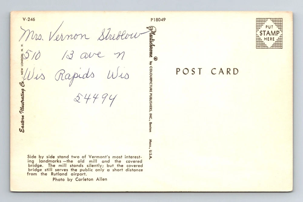 VT-Vermont Scenic covered bridge Mill and Stream Landmarks Vintage Postcard