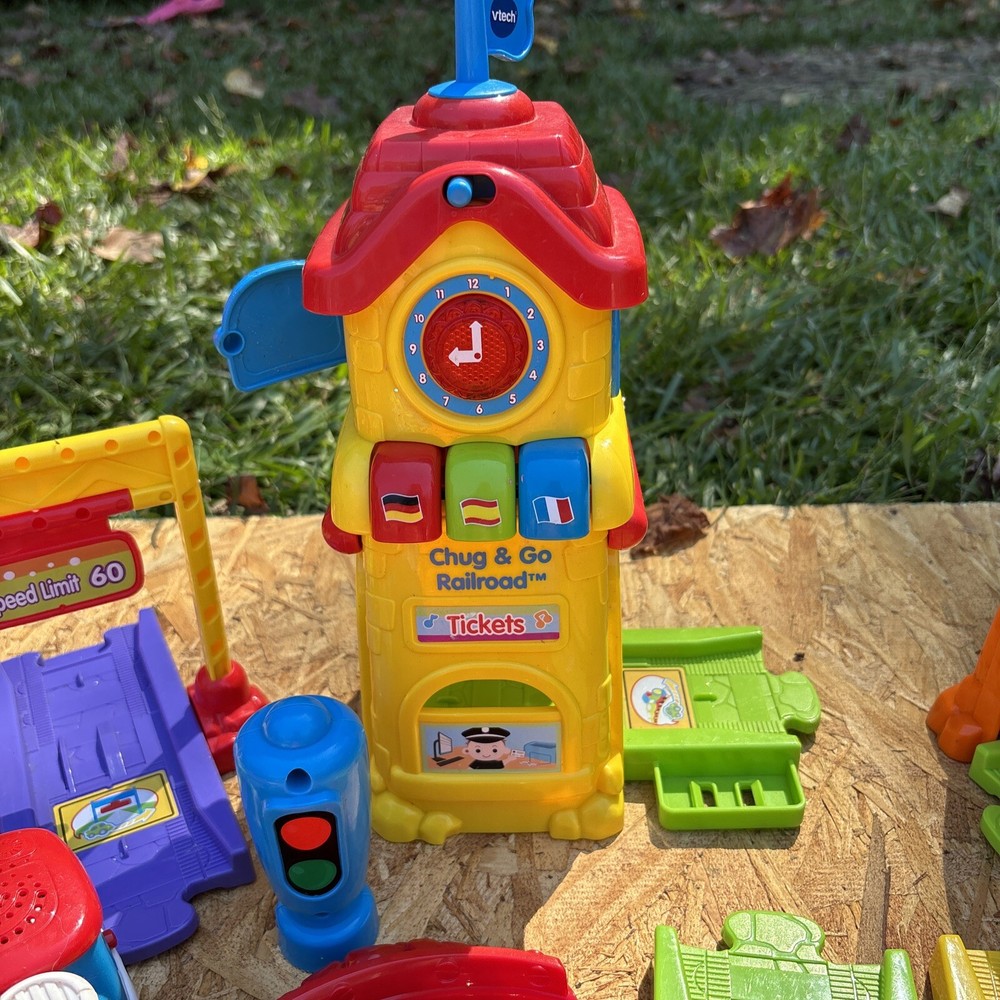 Enhance your child's imaginative play with this VTech Go! Go! Smart Wheels Train Station Playset. This playset is designed to provide hours of fun for kids aged 1-5 years. The set includes a train station with a functioning train track, a ticket counter, a turnstile, and a bell tower. It also comes with a variety of accessories such as trains, passengers, and cargo. The VTech Train Station Playset is perfect for both boys and girls and is made in China with high-quality materials. This playset is an excellent addition to any child's toy collection and will promote their creativity and motor skills. Get your little one this Train Station Playset today and let the fun begin! Missing a stop arm