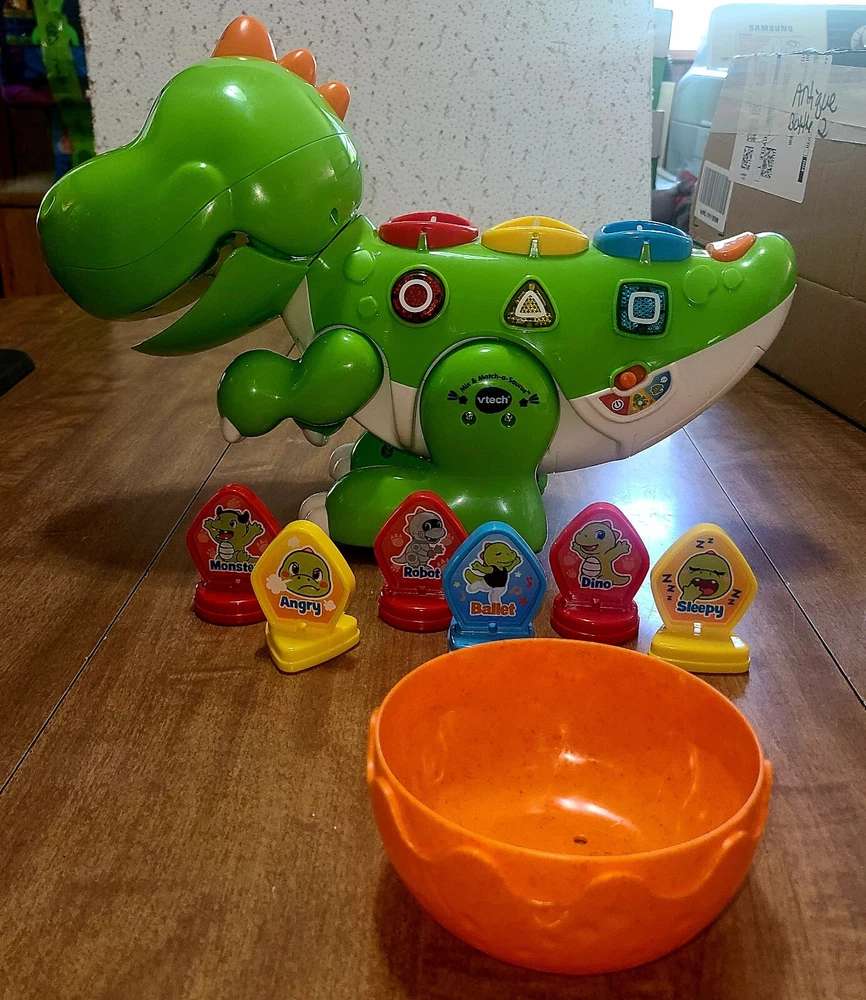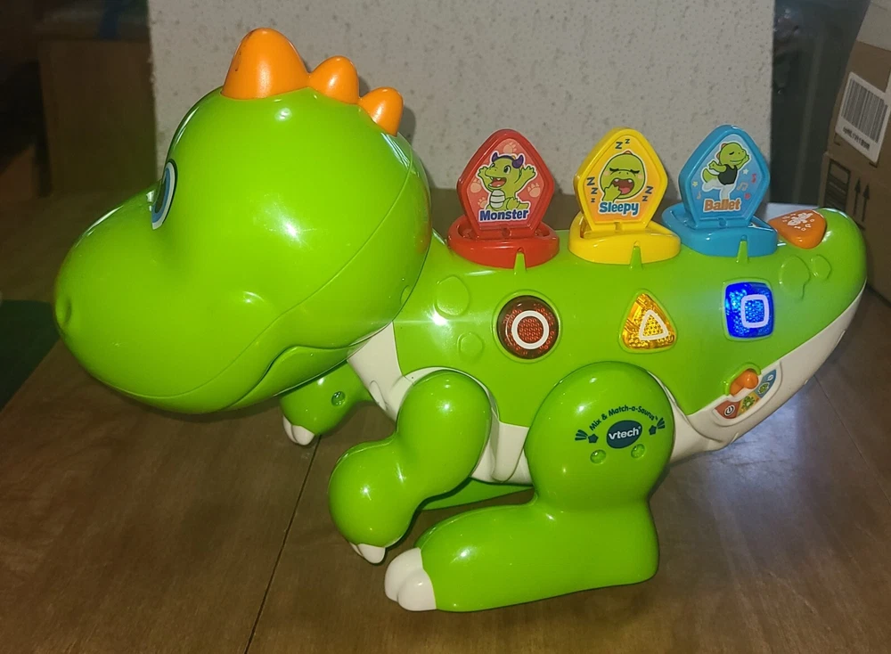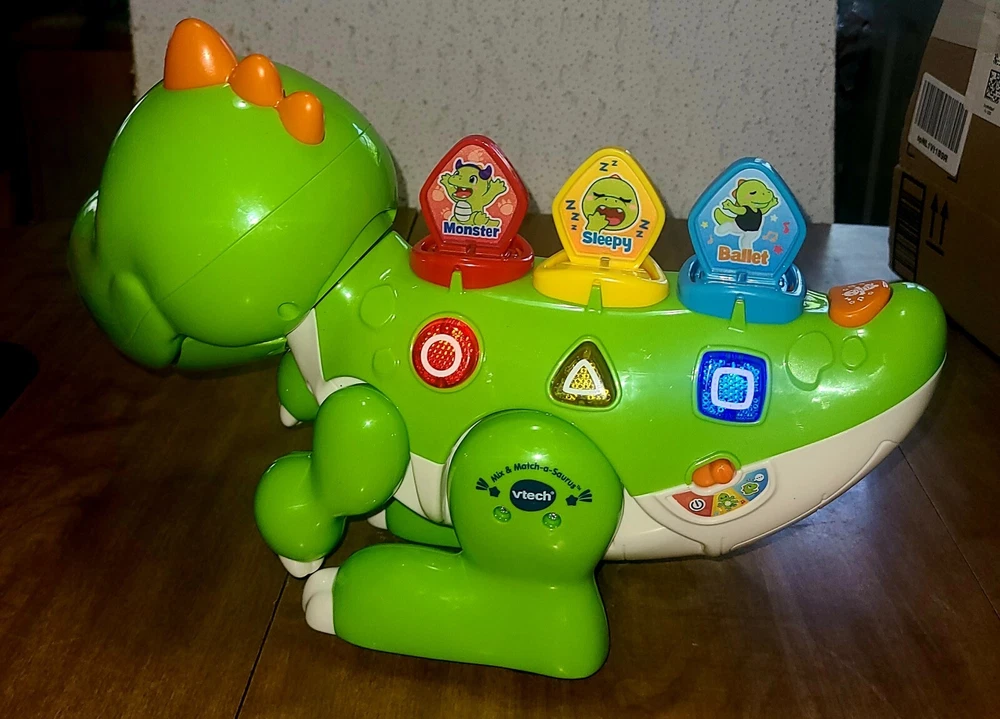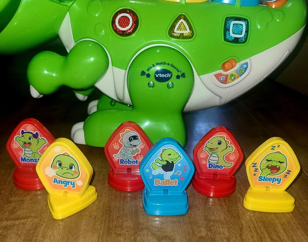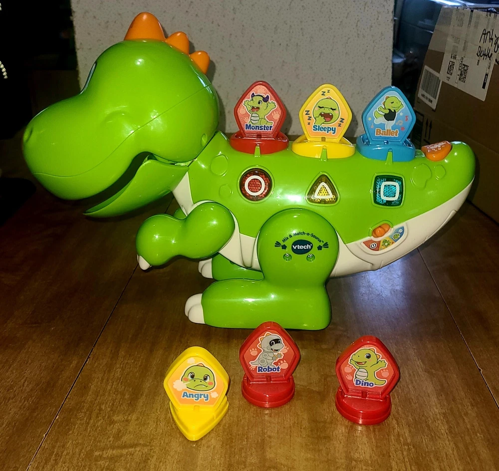 Enhance your child's cognitive skills with the VTech Mix and Match-a-Saurus. This interactive educational toy features a variety of emotions, music, dancing and talking options that are perfect for developing your child's role-play, social and emotional skills, cause and effect, motor skills, and creativity. With a fun dinosaur theme and multi-color design, this toy is suitable for both boys and girls aged 24 months to 5 years+. Made in China, the VTech Mix and Match-a-Saurus is the perfect developmental toy for your child.