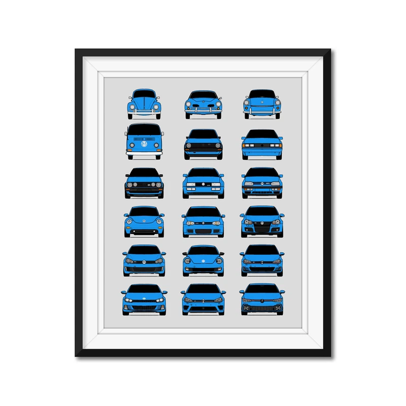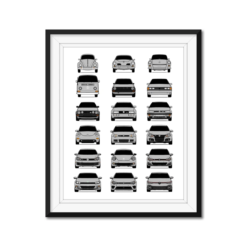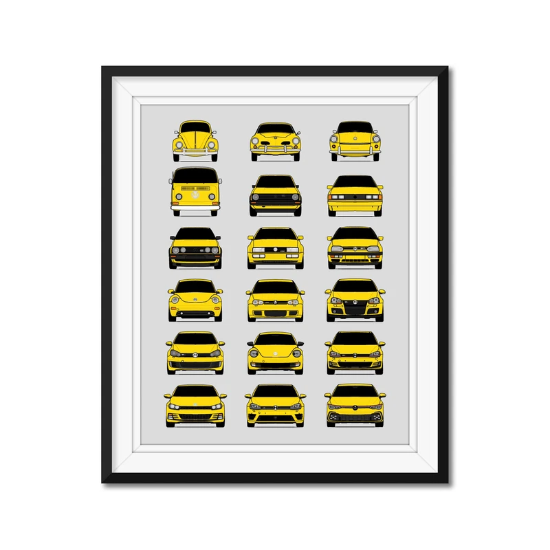 Frame and mat are NOT included. Car Poster print inspired by the history and evolution of the Volkswagen (Beetle, GTI, Golf). This print will look amazing in your home, office, or garage and would make the perfect gift for a Volkswagen or car lover! HANDMADE IN CANADA: Every print is custom made to order and printed in Vancouver, Canada. In order to minimize shipping times, we transport our prints across the border 3 to 5 times per week and ship with USPS first class (unless a faster shipping carrier is available). PRINT DETAILS: We print on premium 68 lb metallic or satin photo paper, using professional Epson printers and archival inks. These high quality fine art prints have incredible detail, resolution and vibrancy. There is a small white border around the print. Product color may slightly vary due to your monitor calibrations and settings. * Satin Paper: This brilliant bold white satin paper is a traditional premium paper that will display the full color gamut of the print with a textured satin and luster finish. MADE JUST FOR YOU: Each and every print is made to order with your choice of customizations that suit you best! If there is a problem with your order, please contact us immediately and we will work with you to resolve the problem.