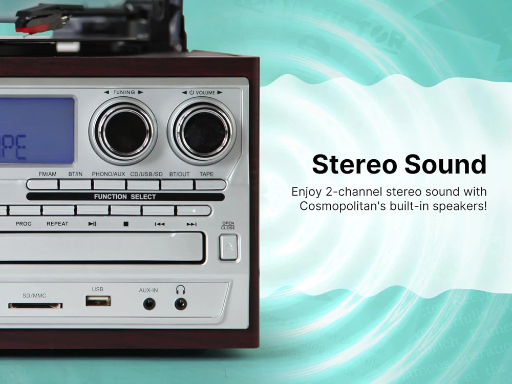 Store New Arrivals Add to Favorite View Feedback Contact VWRP-4200 Cosmopolitan 8-In-1 Turntable Music Center with 3-Speed Record Player, Cd/Mp3/Cassette Player, AM/FM Radio, Dual Bluetooth in & Out, USB Playback & Recording Description Item model number VWRP-4200-BK Style retro Maximum Rotational Speed 78 RPM Color Black Product Dimensions 12.8 x 7.9 x 11.6 inches Material Wood, Plastic Country of Origin China Item Weight 7.1 Pounds Connectivity Technology Bluetooth Model Name Cosmopolitan Special Feature USB Port Included Components UL Approved Adaptor, Remote Control, User Manual, Quick Set Up Guide 8-IN-1 MUSIC CENTER FOR ALL-IN-ONE LISTENING -- The Victor VWRP-4200 Cosmopolitan combines a 3-speed turntable, CD/MP3 player, cassette player, AM/FM radio, dual Bluetooth in & out, USB playback & recording, and built-in stereo speakers, offering a complete music experience. 3-SPEED RECORD PLAYER FOR VINYL FANS -- Play your vinyl records with the built-in 3-speed turntable, supporting 33 1/3, 45, and 78 RPM formats. Whether you enjoy modern LPs or vintage records, this system has you covered. CD/MP3 AND CASSETTE PLAYERS FOR RETRO PLAYBACK -- Enjoy your favorite CDs, MP3s, and cassette tapes with built-in CD and cassette players, allowing you to listen to your entire music collection, from analog to digital formats. DUAL BLUETOOTH IN & OUT FOR FLEXIBLE STREAMING -- With dual Bluetooth capabilities, stream music wirelessly from your smartphone or tablet, or transmit music from the turntable to Bluetooth headphones or speakers for added convenience. USB PLAYBACK AND RECORDING FOR DIGITAL MUSIC -- Play digital music files from a USB flash drive or record your vinyl, CDs, and cassettes directly to digital format with the USB recording feature, preserving your favorite tunes. AM/FM RADIO FOR CLASSIC BROADCAST LISTENING -- Tune in to your favorite AM/FM radio stations, offering access to news, music, and talk shows through this all-in-one system. BUILT-IN STEREO SPEAKERS FOR HIGH-QUALITY SOUND -- The VWRP-4200 features built-in stereo speakers, providing rich, clear audio without the need for additional speakers, making it a convenient all-in-one solution. RETRO-INSPIRED DESIGN WITH MODERN FUNCTIONALITY -- With its vintage-inspired design, the Cosmopolitan adds a stylish touch to any room while offering modern features like Bluetooth and USB recording for a complete listening experience. HINGED DUST COVER -- Included to protect your Device and Vinyl during Playback and Storage." Product Description 1 Vinyl Records 2 CD's 3 Cassettes 1 Stereo Sound 2 Bluetooth Out 3 Input 1 All-In-One 2 Style 3 For Any Space Product Dimensions Product Specifications Turntable Speed: 33/45/78 RPM Bluetooth Version: 5.0 Inputs: Aux In, USB, SD Memory Card Output: Line Out Power Source: AC 100-240V Accessories Included: ETL Approved Power Adaptor, Remote Control, User Manual ABOUT US We offer the best prices around on high quality products. Our E-store includes media such as books, movies, music and games while offering electronics, toys, sporting apparel, clothing, tools, general home, garden items and more. SHIPPING We are always working hard to ensure your package arrives as soon as possible. Please understand that some factors like weather, high postal traffic, and the performance of shipping companies are outside of our control. We offer free shipping to the lower 48 states and ship within 2 business days of payment, usually sooner. We do not accept P.O. Boxes. Please provide a physical address. For shipping outside of the continental USA, we only use eBay's Global Shipping Program.The item is shipped to KY and then sent to the rest of the world. International customers are responsible for all duties and taxes. Continue to check out in order to calculate costs for shipping the item to your country. Messages regarding eBay's Global Shipping Program MUST be directed at eBay EXCLUSIVELY. RETURNS We offer a 30-Day Return Policy on items which you are not completely satisfied with. You have the option for a full-refund or an exchange of the item. No returns are available on items shipped outside of the USA. PAYMENT We accept PayPal. CONTACT US This page content is yet to come Please ad us to your favorite seller and visit again later Thank You CUSTOMER SATISFACTION We try our very best to make sure every customer is completely satisfied. If there's a problem, message us! We're happy to help. WE ACCEPT Copyright © 2021 AutoDS. | All Rights Reserved