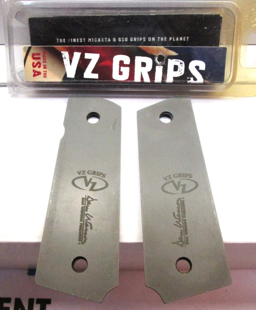 1911 stocks grips as produced by VZ Grips, Bawidamann Ragnarvak . The material is G10, color is Black/Grey. Slim Thickness, Standard Profile, Non Ambi. Government or Commander models only. Excellent overall condition with no marks or loss of finish. Does not include the required slim grip screws and frame bushings... Plea se note that this grip set requires "slim" grip screws and frame bushings. We recommend that these be replaced by a professional who has the proper tooling to remove the full thickness frame bushings and install the slim thickness frame bushings... Shipping is via USPS Mail service. Includes full value shipping insurance... NO INTERNATIONAL SHIPPING, CONUS ONLY, USA ONLY! Any sales taxes are charged, collected and disbursed eBay. We share no responsibility for any sales taxes assessed for this transaction. Just a private seller cleaning out boxes and closets. Check out my store. Got some quality stuff for sale!