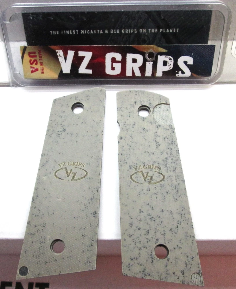 1911 stocks grips as produced by VZ Grips, Operator II . The material is G10, color is Black/Grey. Slim Thickness, Magwell Profile, Ambi Safety Cut, Thumb Notch Mag Release. Government or Commander models only. Excellent overall condition with no marks or loss of finish. Does not include the required slim grip screws or frame bushings... Plea se note that this grip set requires "slim" grip screws and frame bushings. We recommend that these be replaced by a professional who has the proper tooling to remove the full thickness frame bushings and install the slim thickness frame bushings... Shipping is via USPS Mail service. Includes full value shipping insurance... NO INTERNATIONAL SHIPPING, CONUS ONLY, USA ONLY! Any sales taxes are charged, collected and disbursed eBay. We share no responsibility for any sales taxes assessed for this transaction. Just a private seller cleaning out boxes and closets. Check out my store. Got some quality stuff for sale!