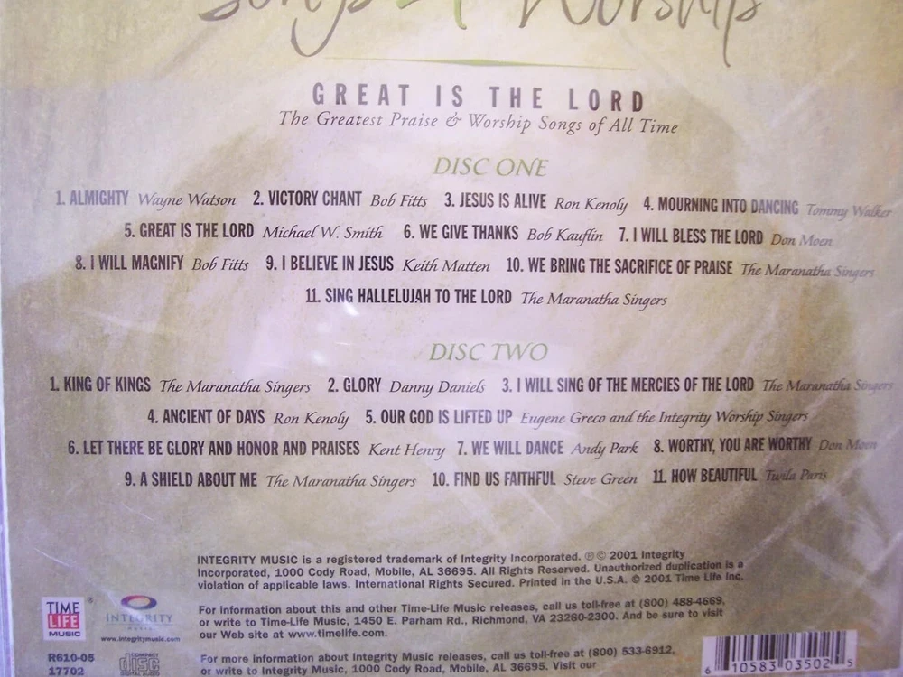 Further Details Title: Songs 4 Worship: Great Is The Lord Condition: New Format: CD Genre: Country Artist: Va-Songs 4 Worship EAN: 0610583035025 Missing Information? Please contact us if any details are missing and where possible we will add the information to our listing.