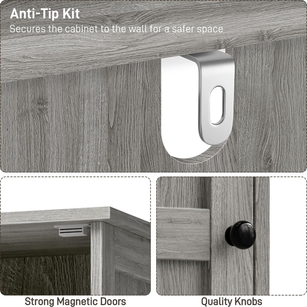 Vabches Tall Bathroom Cabinet, Slim Bathroom Storage Cabinet with Adjustable Shelves and 2 Doors, Narrow Floor Storage Cabinet for Bathroom, Kitchen, Living Room, Rustic Grey 【Clear Acrylic Door & Farmhouse Design】The combination of farmhouse and acrylic elementsis unique and charming. It not only retains the simplicity and naturalness of the farmhouse but also adds a sense of modernity. The acrylic door is translucent , allowing you to easily view the items inside the cabinet and easy access. It is a perfect combination of fashion and practicality. 【Perfect for Small Spaces】Sized at 11.69"D x 15.75"W x 67.80"H, this narrow yet tall cabinet makes full use of vertical space, increases storage capacity, and saves space for the bathroom. It is very suitable for narrow spaces. 【Multifunctional Storage Cabinet】This versatile cabinet is simple and elegant with extremely strong storage capacity. It is an excellent choice for uses such as bathroom cabinets and kitchen cabinets. Its multifunctional design can be easily integrated into any scene and perfectly blends with bathrooms, living rooms, and kitchens, adding convenience and beauty to home life. 【Flexible Storage Space】This bathroom cabinet has two adjustable shelves that can be freely adjusted according to the size of different items to meet different storage needs. The flexible storage space design makes storage no longer restricted. Whether it is small items or large items, a suitable storage location can be found. 【Sturdy, Stable, and Safe】This tall bathroom cabinet adopts a high-quality solid wood reinforced base and has better stability and support capacity. The anti-tipping accessories effectively avoid the occurrence of potential dangers and provide reliable protection for you and your family. 【Easy to Assemble】Its assembly is very simple. Vabches products will all include instructions. All parts have detailed labels and step-by-step instructions on the instructions. In just about 40 minutes, you can get a practical floor storage cabinet. 【Outstanding Client Service】No matter if you encounter any problems when installing the product or using the product, please feel free to contact us at any time. Our excellent customer service team will provide you with a satisfactory solution within 24 hours! Let you have a pleasant shopping experience.
