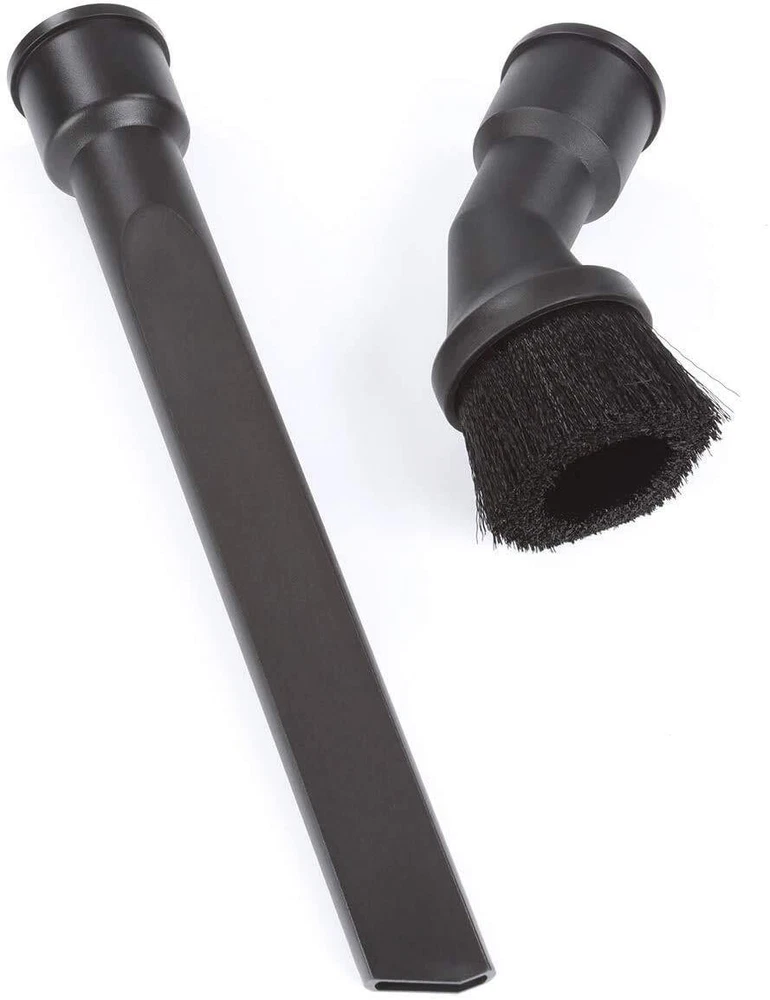 This handy combination of wet dry vacuum accessories come in a convenient attachment kit lets you dust as you clean, get into tight places and crevices. It contains both a Dusting Brush and A Crevice Tool that utilize Dual-Fit technology. Dual-Fit technology allows for use with most 1-7/8-inch or 1-1/4-inch diameter wet dry vacuum hoses. Reduce the number of accessories you need with Dual-Fit technology allowing the nozzles to work with most 1-7/8-inch and 1-1/4-inch shop vacuum hoses Bristles of the vacuum cleaner brush attachment gets into crevices and fine materials to clean A wet dry vacuum crevice tool lets a user gets into tight spaces This shop vacuum attachment cleans hard to reach cracks and crevices unlike most wet dry vacuum accessories that are too bulky for a tight space 2-Piece kit of wet dry vacuum accessories Include dusting brush and crevice tool attachments Bristles of the vacuum cleaner brush attachment gets into crevices and fine materials to clean A wet dry vacuum crevice tool lets a user gets into tight spaces This shop vacuum attachment cleans hard to reach cracks and crevices unlike most wet dry vacuum accessories that are too bulky for a tight space 2-Piece kit of wet dry vacuum accessories Include dusting brush and crevice tool attachments