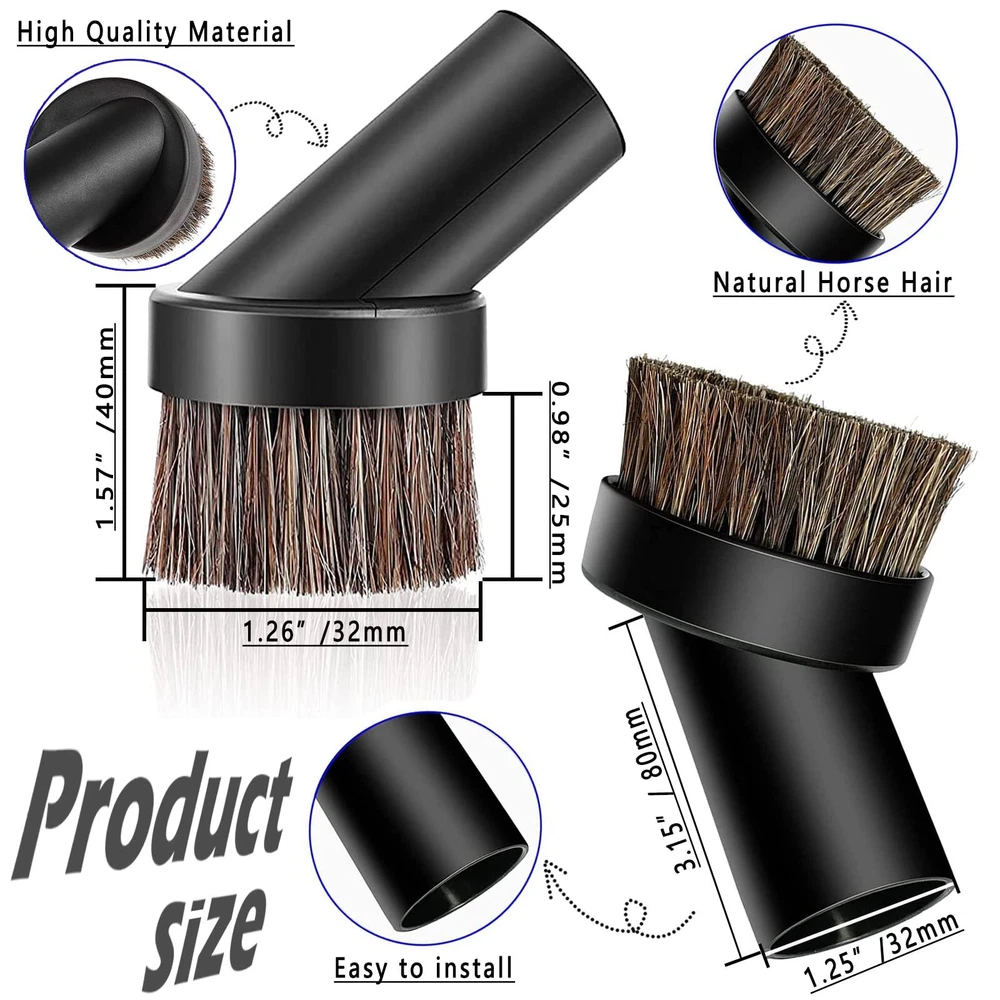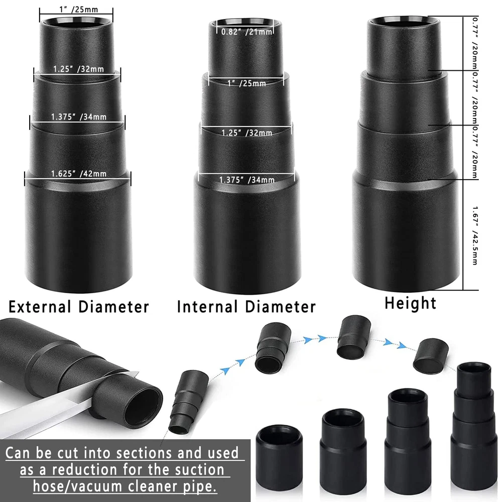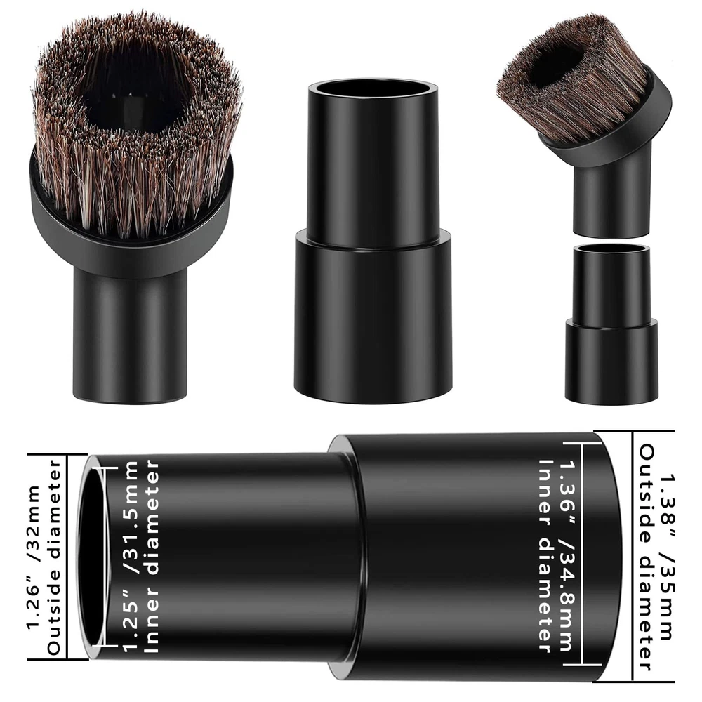 There are a total of 7 vacuum cleaner accessory adapters of different specifications, which can be adapted to more vacuum cleaner models, so that you have no worries. 5 Layer Universal Vacuum Hose Adapter: Outer diameter of the 5 layers vacuum adapter is 27mm, 32mm, 35mm, 40mm, 50mm. Suitable for vac attachment with 1"(25.4mm), 1 1/4'' (32mm), 1 3/8'' (35mm), 1 1/2''(39mm), 1 7/8"(49mm) diameter. The vacuum hose adapter can be easily cut into 5 size connector to fit for vac accessories. Vacuum Hose Converter 1-3/8" to 1-1/4": This hose converter reduces a 35mm/1-3/8" vacuum to a 32mm/1-1/4" attachment, allowing your vacuum to accommodate more cleaning brushes for a wider range of uses. Package Includes: 1. Horsehair round brush *1 2. Sofa suction nozzle *1 3. T-shaped brush *1 4. long soft flat suction nozzle *1 5. Flat suction nozzle *1 6. Vacuum converter 2-1/2" to 1-1/4" *1 7. Vacuum attachment 1", 1 1/4'', 1 3/8'', 1 1/2'', 1 7/8" *1 🌸More complete functions: The vacuum horse hair brush is made of high-quality natural horse hair, which is very soft and easy to clean, and is suitable for cleaning and vacuuming different materials, including marble, hardwood, tile, linoleum, laminate, parquet floors, concrete and walls. 🌸with more vacuum cleaner models: We have 2 different models of vacuum attachments connectors, the vacuum attachment fits most vacuum cleaners (of course a few models may not fit), sizes are 1", 1 1/4'', 1 3/8'', 1 1 /2'', 1 7/8" ID. (Please double check the inner diameter of the hose/rod before purchasing, if not fit please us) 🌸Household Cleaning Essentials: Universal vacuum attachments kit are enough for multi-purpose cleaning at home, office and car interior ,such as : Keyboard, any gaps, shutter, sofa, vent, drawer, car, plants, remove pet hair and corners. 🌸set for all your needs: You will receive 7 pieces of wet or dry vacuum hose converters, include Flat suction nozzle *1, Horsehair round brush *1, Sofa suction nozzle *1, T-shaped brush *1, Vacuum converter 2-1/2" to 1-1/4" *1, Vacuum attachment 1", 1 1/4'', 1 3/8'', 1 1/2'', 1 7/8" *1, -in-flat suction *1. 🌸Durable and not easy to break material: These vacuum cleaner hose adapters are made of high-quality ABS plastic material, which is lightweight, durable and stable, easy to use, not easy to break or damage, and can be used for a long time.