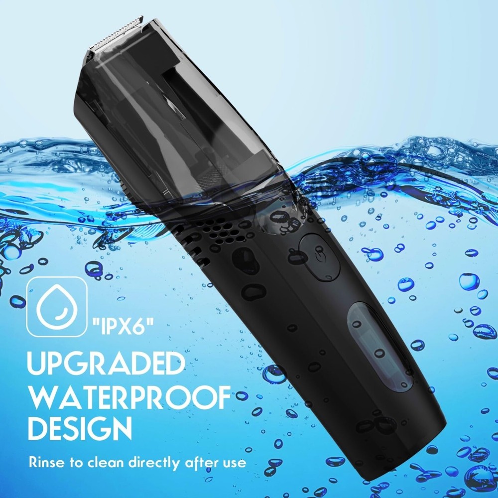 Vacuum Beard Trimmer for Men Rechargeable, IPX6 Waterproof Mustache Trimmer with Adjustable Length Combs (1/25’’-4/5’’), Men’s Electric Stubble Trimmer, Cordless with Built-in Vacuum (Black) Product Details Color: Black Brand: ATVOXIS MPN: AT-001-2024 UPC: 739608482948 EAN: 0739608482948 Recommended Uses For Product: Chest, Beard, Head, Mustache, Neck Color: Black Hair Type: All Item Weight: 200 Grams Brand: ATVOXIS Product Dimensions : 7.48 x 1.97 x 1.97 inches; 7.05 ounces Item model number : AT-001-2024 Batteries : 1 9V batteries required. (included) Date First Available : December 12, 2024 Manufacturer : ATVOXIS Country of Origin : China POWERFUL VACUUM DESIGN: Our vacuum beard trimmer features a unique vacuuming system that collects hair and stores them in a chamber. Ensure minimal mess on your sink or floor after every grooming experience. SHARP BLADE + ADJUSTABLE COMBS: This adjustable beard and mustache trimmer is equipped with sharp blades that always maintain at peak performance. Whats more, 2 combs ranging from 1/25-4/5 (1-20mm) meet your needs for all beard lengths by simply turning the knob on the back to adjust the length you prefer. WATERPROOF: Our electric beard trimmer for men is fully waterproof, allowing for easy cleaning under running water, ensuring hygiene and convenience during your grooming routine. TRAVEL PARTNER: The 3-second travel lock design makes this beard trimmer with vacuum an ideal travel partner, ensuring it will not accidentally turn on in your luggage during your journeys. In addition, the travel bag coming with this mens beard trimmer helps you better store it. DURABLE BATTERY + CHARGING ADAPTER: 90 minutes of running time for this cordless beard trimmer gives you enough time to slowly trim your beard and create whatever style you want. Also, each vacuum trimmer comes with a USB-C charging cable and a charging adapter for easy recharge, enhancing your trimming experience with premium accessories.