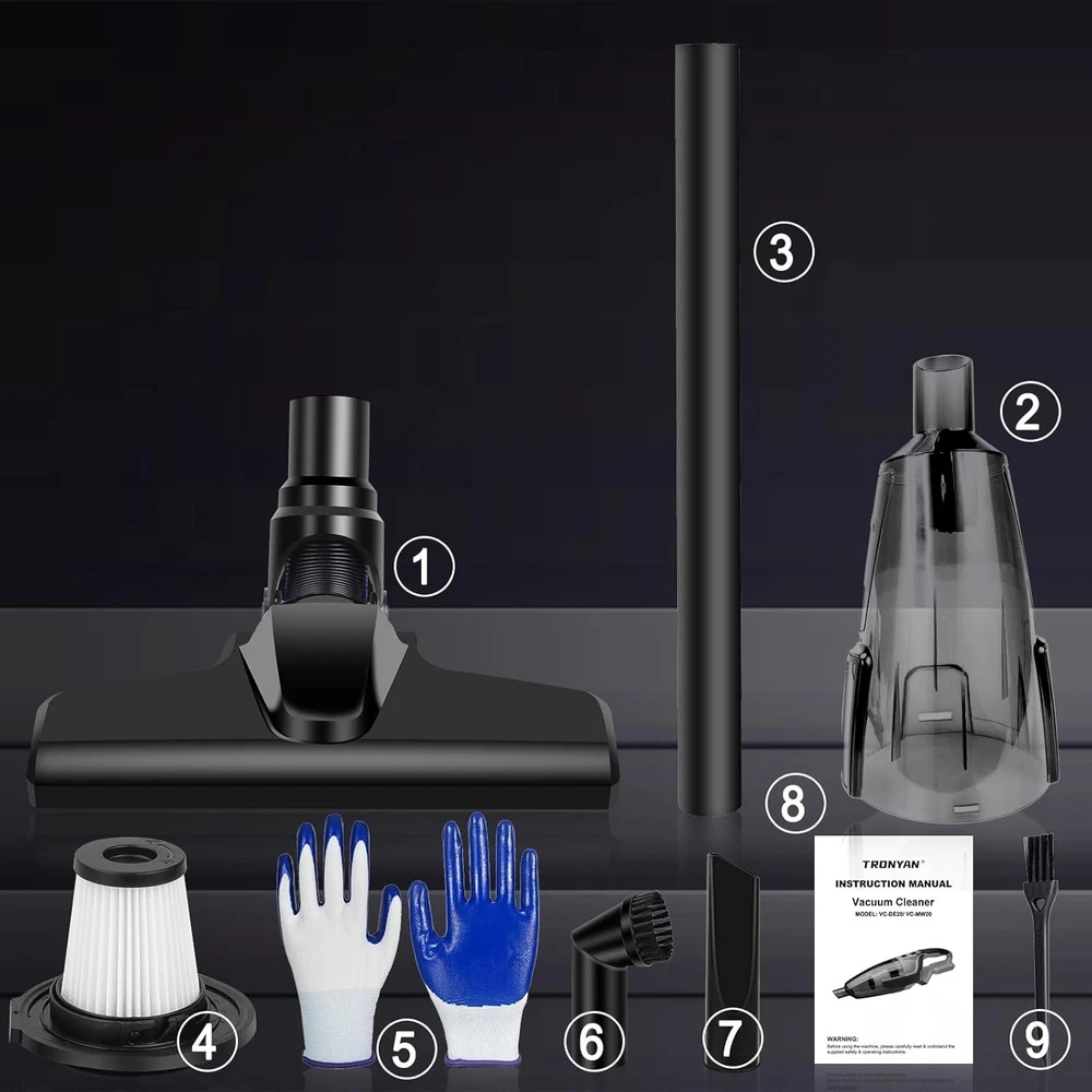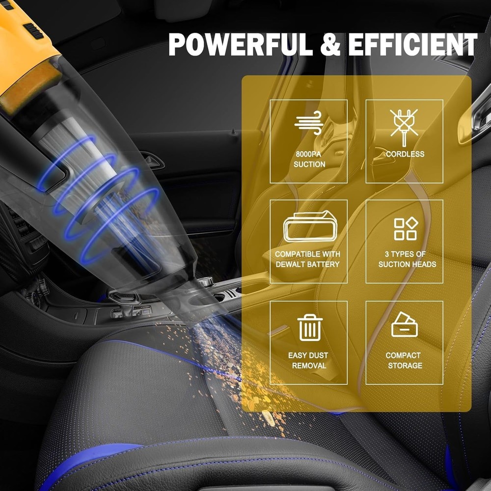 Cordless Vacuum Cleaner Compatible with DEWALT 20V Battery (Battery NOT Included), Handheld Vacuum for Home, Boat, Workshop, Car, Pet Hair, Furniture-Tool Only Brand TRONYAN Special Feature Cordless, Lightweight, Portable Filter Type HEPA Filter Included Components 1 x Vacuum, 2 x Heap Filter, 1 x Brush for Heap Filter,1 x Wide Mouth Nozzle, 1 x Crevice Nozzle, 1 x Brush Nozzle, 1 x Extension Tube, 1 x Manual1 x Vacuum, 2 x Heap Filter, 1 x Brush for Heap Filter,1 x Wide Mouth Nozzle, 1 x Crevice Nozzle, 1 x Brush Nozzle, 1 x Extension Tube, 1 x Manual Is Cordless? Yes Surface Recommendation indoor outdoor car vehicle pet room Power Source Battery Powered Voltage 20 Volts Wattage 120 watts About this item NOTICE: Compatible with DEWALT 20V Battery. Battery NOT Included ! ! ! Tool Only ! ! ! Just plug in your batteries on our powerful vacuum cleaner and start your cleaning! ✅【Powerful Suction Performance】 Equipped with 93W high-power motor, the vacuum delivers impressive 8KPa super suction to tackle hair, dirt, and debris from carpets, harwood floor, car interiors, furniture, and high-traffic areas. ✅【Cordless & Lightweight】Enjoy the freedom of movement with this cordless handheld vacuum. It is lightweight and suitable for people with different ages to operate. Get rid of tangled cords and solve hard-to-reach problems. ✅【Versatile Cleaningx】 Comes with 3 different heads and extension rod. It can be applied to different scenarios such as stair, or car, which solves the troubles of traditional vacuum cleaners that are inconvenient to clean hard-to-reach corners. ✅【Easy Maintenance & Reusable Filter】: The 600ML detachable container is easy for rapid garbage dumping and wastes collection. The 2 reusable, reusable and easy to clean filters ensure optimal performance over time. . We offer FREE shipping on all orders! . We ship within Five business days of payment, usually sooner. . We use a selection of shipping services such as UPS, FedEx, USPS etc. . We only ship to the lower 48 states, no APO/FPO addresses or PO Boxes allowed. . Local pickups and combined shipping options are not provided at this time. . Your satisfaction is a wonderful reward for our efforts. Please assist us by leaving a positive review if you feel pleased with our service. . In the event that you encounter any difficulties related to your order, please do not hesitate to reach out to us directly through the Messaging system on the Ebay platform. Kindly consider opening a COMPLAINT or a RETURN REQUEST as a last resort, only after all other possible measures have been attempted and we have been unable to provide you with assistance. . We will get in touch with you within 24 hours and make every effort to ensure your satisfaction. . Please rest assured of our service quality.
