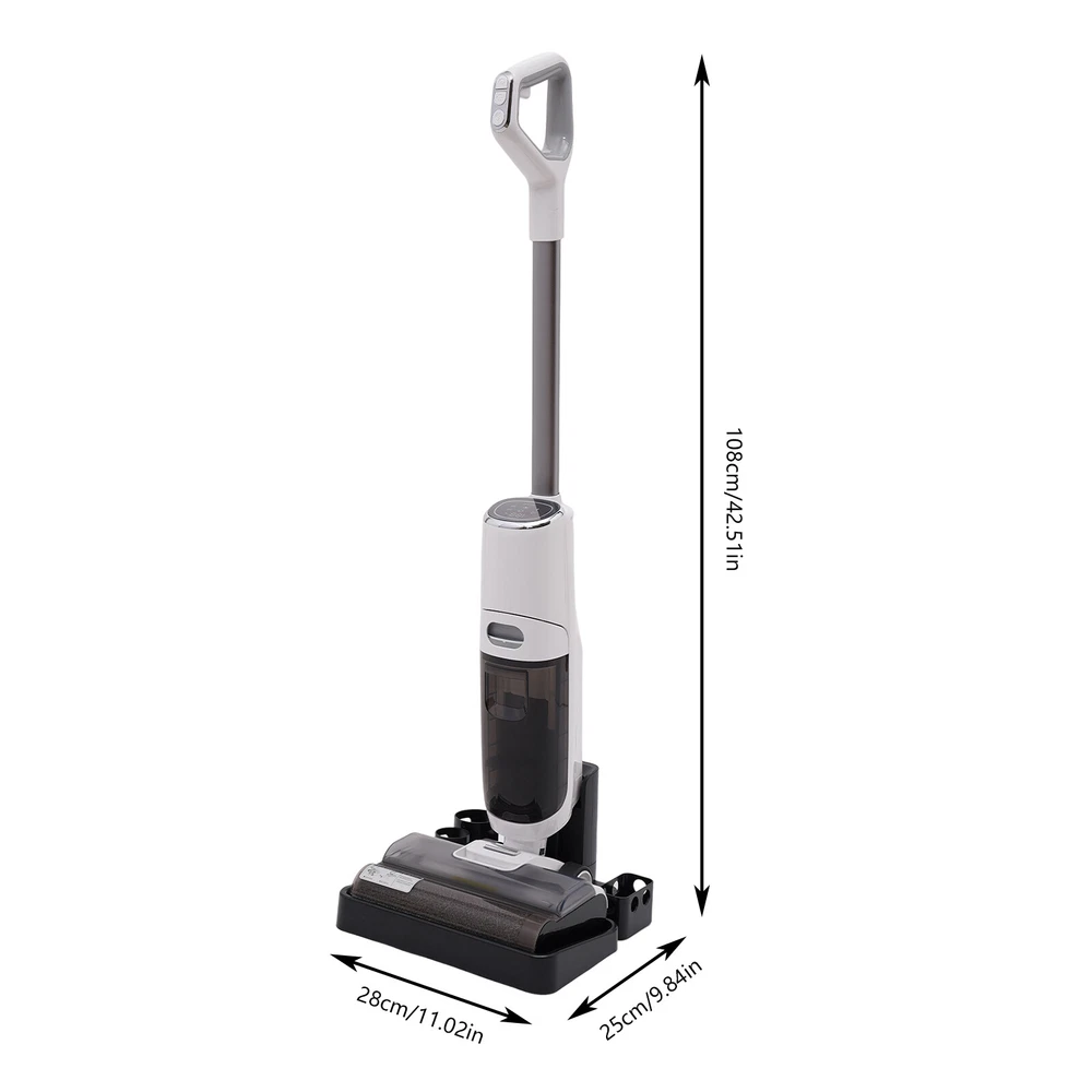 Vacuum Floor Cleaner One-Step Vacuum Mop Cordless Hardwood Cleaning Wet Dry US Description Are you still anxious about the hair, dust, etc. in your home that is not easy to clean? Then this wet dry vacuum cleaner can help you solve many home cleaning problems, it adopts an intelligent design, a powerful motor, and a large-capacity water tank, making it easy to clean, so it will be an indispensable item for your home! Key Features Build to Last: It is made of high-quality ABS with frosting treatment, which is anti-tarnish, wear-resistant, corrosion-resistant, and can ensure extended service life. High Safety: Multiple heat dissipation holes, IPX4 level, and a wide voltage of 100-240V can effectively ensure safety during use, so you can use it with confidence. Powerful Function: 250W brushless motor with less noise, 25,000pa suction power, advanced brush edge design, and soft fluffy brush head allow it to remove germs , stains, hairs, etc. from floors and dead corners without disturbing your neighbors or family members and leaving less marks on the floor . Efficient Cleaning: With a 4400mah li-no battery, it can do about 30-40 minutes of cleaning on the high end and about 1 hour on the low end, which will meet your cleaning needs for both big houses and small rooms, and the large 20.29Oz visible fresh water and sewage tanks reduce the frequency of your water changes and achieve the separation of clean water and sewage, making it more hygienic . Thoughtful Design: The visible LED screen and indicator lights with voice broadcasting function allow and inform you to track cleaning progress at a glance and keep you alerted to battery and tank status. Healthy Life: Electrolyzing live water to form a disinfectant solution, while one-touch self-cleaning, the rolling brush and pipeline are synchronized with deep sterilization and cleaning, without adding disinfectants or residues so that you and your children can play barefoot on the floor, and the function of the negative ion air-drying makes it scientifically exhausting, to avoid the brush moldy and smelly. Effortless Saving: The removable lever, ergonomic handle with buttons and motorized traction design allow you to clean your home with ease. Easy to Store: The small base (11.02*9.84inch) allows you to neatly store equipment behind a door or against a wall without taking up too much space. Ideal Gift : With its practicality, and powerful features, you can give it to your friends as a Christmas gift! Details Power Socket: With this socket, it can be well adapted to our charger, so that you can charge more conveniently. Practical Brush: With an extra cleaning brush, you can easily scrub the couch or pet room hair. Storage Rack: It allows you to temporarily store some cleaning supplies, making it more convenient. Cleaning Cloth: We provide an extra cleaning cloth for you to replace, so you can replace it in a timely manner . Filter: It can better filter impurities and improve cleaning efficiency. Application It can be used on hardwood, linoleum, vinyl, marble, hard floors, carpets, ceramic tiles, laminates, etc. in rooms, pet rooms, baby rooms, kitchens, bathrooms, etc., and can be used to clean dust, hair, debris, liquids, sauces, stains, etc. Specification Color: Black and White Type: T9pro Material: ABS Cloth Material: Fluff Manual Type: Hand, Button Process: Frosting Motor: Brushless Motor Mounting Type: Freestanding Number of Pieces:1 Assembly Required: Yes Power Source: Battery Plug Type: US Standard Screen: LED Suction: 25000Pa Input Voltage: 100-240 V, 50-60Hz, 0.5A MAX Output Voltage: 22V, 900mA Power: 250W IP Level: IPX4 Clear Water Tank Capacity: 600ml/20.29Oz Dirty Water Tank Capacity: 600ml/20.29Oz Battery: 1* 4400mah Li-ino Battery(Included) Battery Voltage: 18V Charging Time: 5-6h Using Time: About 30-40mins for High Level/About 1 hour for Low Level Net Weight: 7.5kg/16.53 lbs Gross Weight: 8kg/17.64 lbs Package Size: 65.5*31.5*34.5cm/25.79*12.4*13.58inch Product Size: 28*25*108cm/ 11.02*9.84*42.52inch Package Included 1* Wet Dry Vacuum Cleaner 1* Li-ino Battery 1* Power Socket 1* Brush 1* Power Adapter 1* Conversion Plug 1* Chinese and English Manual Notes To prevent sewage from flowing out, please do not lay the machine flat or shake the body violently. Please do not use the product to absorb foamy liquids, and do not soak or rinse the product under the faucet. Please note that this product does not control the cleaning strength and water output. Please note that there may be a small amount of water in the freshwater tank left after testing, which does not affect the use of the product. T he usage time and suction of the product may be affected by the environment and temperature . Please use it after reading the instructions carefully and pay special attention to the safety tips inside. Please ensure that there is water in the clean water tank before use. Please clean the stains and hairs on the vacuum port and roller brush in time to avoid blocking the air duct. After use, please put the product back to the charging seat, so as not to leave water stains on the ground. Please allow the slight color difference caused by the shooting light and 1-3cm error due to manual measurement, and make sure you do not mind before ordering. Payment Delivery details Terms of sales About us Contact us Payment We accept ebay payment 。 Fees such as import duties, taxes are not included in the item price or shipping costs. These charges are the buyer's responsibility. Delivery details Shipping: 2-9 working days to: USA Terms of sales We maintain high standards of excellence and strive for hundred percent customer satisfaction. Feedback is very important to us. We hope that you contact us immediately before you give neutral or negative feedback, so that we can address your concerns. It is impossible to address issues if we do not know about them! About us Your satis faction is our ultimate goal. We work hard to earn your trust and future business. O