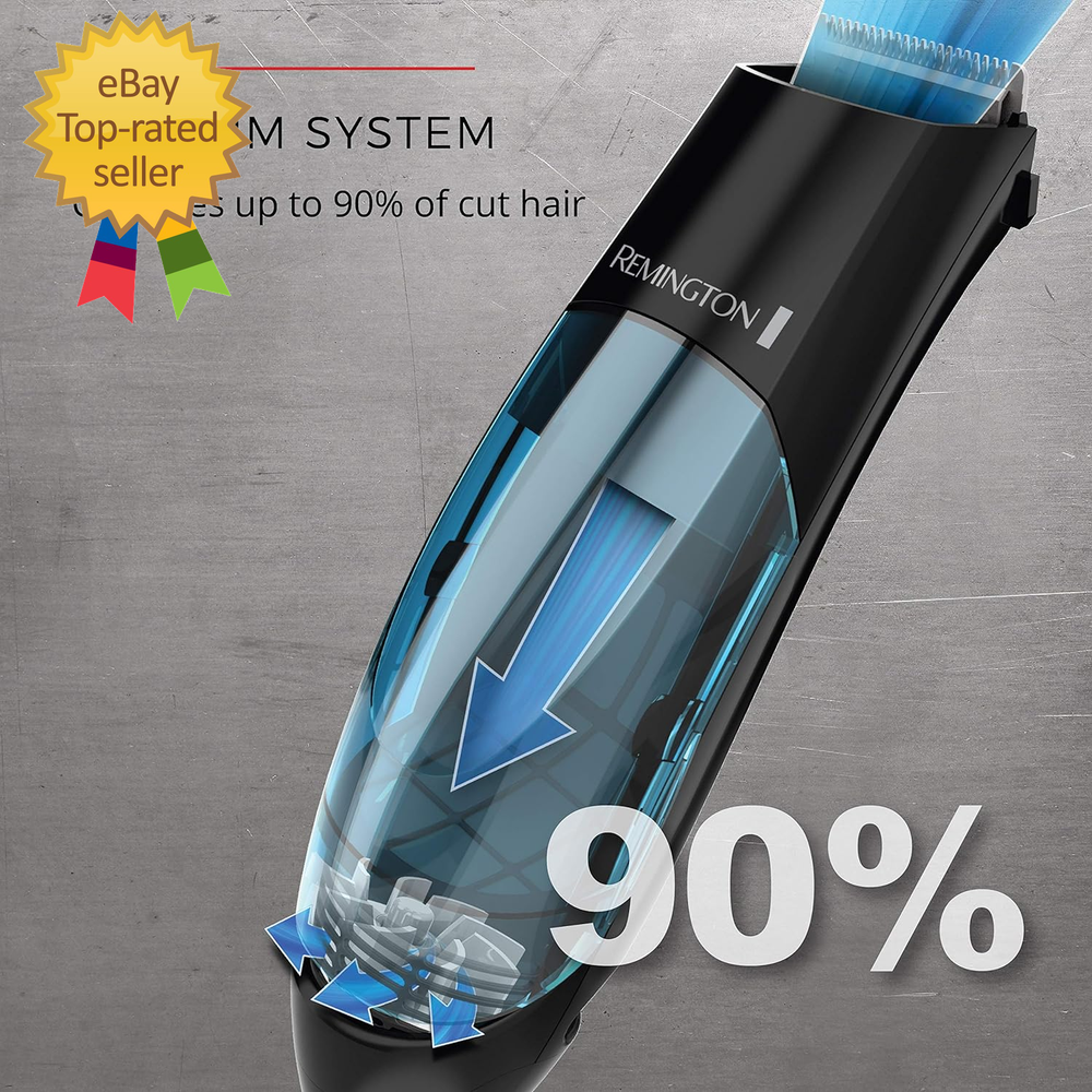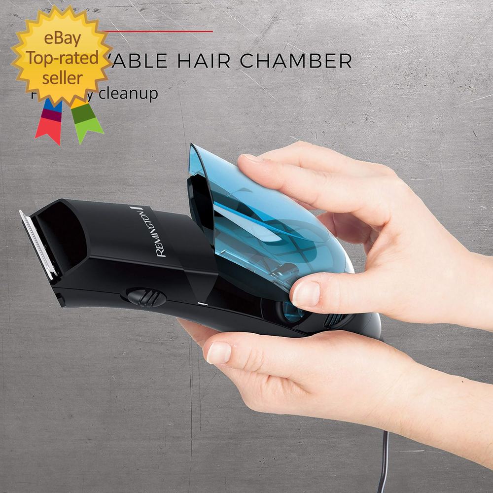 Store New Arrivals Add to Favorite View Feedback Contact Vacuum Haircut Kit, Vacuum Beard Trimmer, Hair Clippers for Men with Description Item model number HKVAC2000C Color Blue Product Dimensions 3.2 x 2.5 x 4.3 inches; 1.57 Pounds Country of Origin China Hair Type Curly Item Weight 1.57 Pounds Recommended Uses For Product Beard, Head, Mustache Is Discontinued By Manufacturer No Size 18 Piece Set VACUUM SYSTEM: The powerful vacuum on these hair clippers for men collects up to 90% of trimmed hairs while you style. That’s a clean look, any way you cut it. PRECISION GROUND BLADES: These clippers feature precision ground blades that remain sharp with every use, ensuring accurate and consistent performance. The kit includes oil for easy maintenance, keeping the blades at peak performance. 18-PIECE KIT: Everything you need for a sharp, mess-free haircut! This set includes length-adjusting combs, barber scissors, an XL storage pouch, and more. The cutting range accommodates lengths from 1/8" to 1" DUAL MOTOR POWER: Experience the cutting-edge innovation of dual motors that drive both precision hair clippers and powerful vacuum suction, effortlessly collecting trimmed hairs as you cut for a clean, mess-free styling experience. REMOVABLE HAIR CHAMBER: Trimmed hairs are collected for easy cleanup, making this the perfect choice for a mess-free experience with your men's beard trimmer or hair clippers Say goodbye to messy haircuts with the Remington Vacuum Haircut & Beard Trimmer Kit—an all-in-one grooming solution designed for clean, precise results right at home. This 18-piece kit features a dual motor system that powers both the high-performance blades and a built-in vacuum that captures up to 90% of trimmed hairs in real time. Whether you're trimming your own hair, maintaining your beard, or cleaning up the kids, the removable hair chamber makes post-cut cleanup fast and hassle-free. The precision-ground blades stay sharp and deliver smooth, consistent cuts, while 6 included guide combs give you complete control over your look. Designed for convenience, the Remington vacuum clippers come with everything you need—barber scissors, a styling comb, cleaning brush, and storage pouch. Perfect for anyone who wants pro-level grooming without the mess, this clipper kit helps you look sharp and stay clean—every time. ABOUT US We offer the best prices around on high quality products. Our E-store includes media such as books, movies, music and games while offering electronics, toys, sporting apparel, clothing, tools, general home, garden items and more. SHIPPING We are always working hard to ensure your package arrives as soon as possible. Please understand that some factors like weather, high postal traffic, and the performance of shipping companies are outside of our control. We offer free shipping to the lower 48 states and ship within 2 business days of payment, usually sooner. We do not accept P.O. Boxes. Please provide a physical address. For shipping outside of the continental USA, we only use eBay's Global Shipping Program. The item is shipped to IL and then sent to the rest of the world. International customers are responsible for all duties and taxes. Continue to 'check out' to calculate costs for shipping the item to your country. Messages regarding eBay's Global Shipping Program MUST be directed at eBay EXCLUSIVELY. RETURNS We do not accept returns under normal circumstances. However, we will gladly consider a return if the item is received broken or if the wrong size is sent to you. In all other cases, returns will not be accepted. CUSTOMER SATISFACTION We try our very best to make sure every customer is completely satisfied. If there's a problem, message us! We're happy to help.