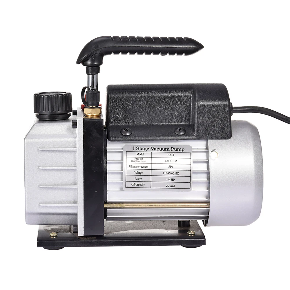 Store category Sign Up Now ! You may also like Product Description Bullet Points: 1. High efficiency: direct drive motor, easy to start, built-in large-capacity cooling fan, thermal protection. 2. Humanized design: oil mirror for oil level monitoring, low noise, exhaust port with exhaust cover, multi-layer filter can meet all user requirements. 3. Special improvements: lightweight cast aluminum structure for maximum durability, precision-machined gears, and multi-layer filters show better performance. 4. Wide range of applications: very suitable for air conditioning, car and refrigerator maintenance, food vacuum packaging and experimental pumps. Compatible with R410a, R22, R404a. Key specifications: Air inlet: about 1/4 inch Trumpet air inlet, 1/4 HP Flow rate: 4.0 CFM. Rated voltage: 110V Maximum vacuum: 5 PA Oil volume: 220ml Plug: US standard (lubricating oil is not included) packing list 1 x vacuum pump 1 x outer carton Payment Delivery details Terms of sales About us Feedback & DSRs Shipping 1. We only ship to United States 2. Delivery Time: Ship from US via FedEx Ground or FedEx Home Delivery 1-5 business days with tracking number. 3. We ship the item out in 24-72 hours after received the payment.(Mon-Fri) 4. If you want to chose another address, please leave us a message on ebay.Please check your shipping address carefully before checkout,it can't be changed if order completed. Seriously promise:Refund or resend will be offered if item still not arrive in 7-10 business days. Just send us an email,we will give you a satisfied solution as soon as possible. Payment 1. We accept PayPal only. 2. After you have won the auction, an email will be sent to your eBay registered email address. 3. If you are paying through Paypal using eCheck, note that your item can be shipped only after eCheck has cleared. 4. All payments are expected within 7 days after the last winning auction is closed. A non-payment dispute will be opened if full payment is not received. 5. We only ship the item to your Paypal address for fast and accurate shipment. If you want to change the address, please add a note when you make the payment. after you have paid. Return & Warranty 1. For your best shopping experience in our store and saving your time .Please Do Not click "Return this item" except that you just don't need it any more.Because no return request is our company's Service. Please click "Contact seller" via Ebay Message(protected by Ebay),that is the fastest way to solve any problem for you.You will get the replacement or refund through the communication between us. 2. We fully guarantee Customers benefit within 14 business days if item DOA (damage on arrival), and please contact us within 30 days from the delivery date to exchange or refund.No need return just contact us. Refunds will be given via paypal only. 3. For malfunction products under warranty period, please contact our customer service via EBay Message. Replacements will be sent once after we have a fully communication.No need return the original one after we have fully communication. 4. The buyer has an obligation to cooperate with seller to verify defective item. If you want return, please double check if the item does not work or you just don't need it any more. If the item defective or no work, no need return. 5. All NON-Seller Mistake returns for refund are subject to 20% re-stocking fee and buyer should pay for the return shipping fee and handle fee.(For example,you brought wrong item or cancelled order after item was shipped). 6. A Merchandise Authorization Number (RMA#) is required for all need returned packages(After we have a fully communication). Please contact us to get an "RMA" number before you ship your items back to us. Items returned without an "RMA" number would be ignored or delayed in processing.Returns/Exchanges will not be accepted unless authorization has been issued by our customer service. 7. All return products should be in original package with all accessories included. Contact US Dear buyers, Welcome to our store! Your satisfaction is our top goal,we appreciate your business. 1. If you have any questions, please feel free to contact with us by ebay Message during our business hours ( 9:30a.m. to 5:30 p.m.), or email us through eBay, we will try our best to help you to resolve it. 2. If you are satisfied with our service, please rate the details of the transaction (Detailed Seller Ratings) on eBay and We will do the same for you. 3. If you are not satisfied with the product or service ,please contact us before leave negative or natural feedback, we will try our best to solve the issue to your satisfaction, thanks. Thanks for your patronizing, good luck !!