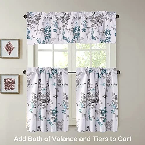 Valance for Kitchen Windows/Bathroom/Living Room/Bedroom Blackout 2 Grey/Teal