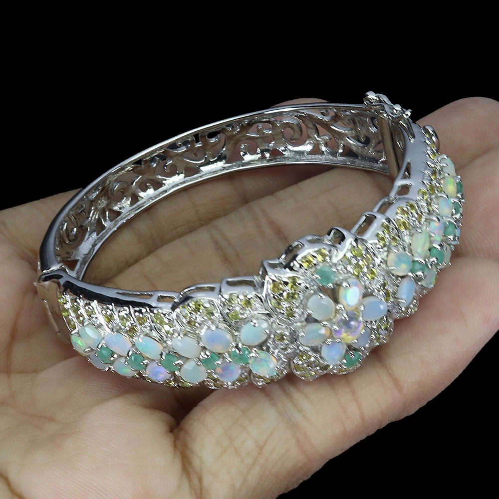Valentine 925 Silver Bangle Oval Fire Opal Emerald Sapphire Gemstone Jewelry PRODUCT ID BG2411050095 PRODUCT TYPE Bangle TYPE OF METAL 925 Sterling Silver PLATE 14k White Gold Ring size/Length (inches) 2 MAIN STONE Fire Opal OTHER GEMS Emerald, Sapphire TOTAL weight 33.09 gram (total weight of silver + stone) DIMENSION * STONE 1.5 TO 4.0 X 3.0 MM. * DIAMETER 2.0 INCHES. * FACE BANGLE 61.0 X 21.0 MM. MAIN STONE SHAPE Oval Cut MAIN STONE COLOR Rainbow Full Flash CLARITY/GRADE If LUSTER Amazing TREATMENT Unheated ORIGIN Ethiopia HARDNESS 5 IF very high quality & Free from inclushions. VVS high quality with very slight inclushions. SI1 Good Quality with slight inclusions visible to the naked eye. SI2 include becoming prominent to the eye. I included. "Delivering excellent with eBay" we accept: PayPal payment which we prefer. FOR US BUYER >>>> PLEASE READ We are genuine seller from THAILAND. All products are originally 100% manufactured in THAILAND. Every items are 100% exported directly from THAILAND. However, we use shipping provider 'Webgistix' who is a US distributor. The items will be allocated from Webgistix's distribution office in Las Vegas, NV by USPS. Please understand that the tracking status will show starting from Las Vegas when you track the items. Feel free to ask for more details. We ship item(s) from Thailand to Worldwide in 24 hr. ( in working day ) after the payment was cleared. $10 - flat rate for a registered airmail, takes 20 - 40 days delivery. Thailand Post stops the service to Latvia, Lithuania, Malta, Moldova, Estonia, Georgia and Israel. Fedex cost up on destination with insure and online tracking. Destinations Asia NORTH AMERICA, CANADA EUROPE (WEST) EUROPE (EAST), SCANDINAVIA, MIDDLE EAST SOUTH AMERICA, AFRICA FEDEX EXPRESS (minimum) $70 $70 $70 $80 $80 Fedex rate will be charged by weight and destination area. A combine package is limited at 10 items within 10 days. Do not send your payment directly, just contact us to request total when you finish bidding (ebay cannot automatic combine items). Any single item weigh over 300ct is not eligible to combine. Buy over US $999 in one payment (10 items within 10days), Get Free FedEx shipment. TAX/CUSTOM: Custom fee is out of seller control. Buyer is responsible for the cost at arrived. Please give us an opportunity when you have questions with item received. Buyer can make agreement on discount or return the shipping in case of damage item. Seller is located in Thailand. So please contact seller for the instruction before return any item. Your communication is most important to solve the problem. International buyers note: Import duties, taxes, and charges are not included in the item price. These charges are the buyer's responsibility. Please check with your country's customs office to determine what these additional costs will be prior to bidding/buying.